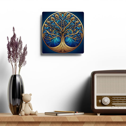 Blue and Gold Stained Glass Tree of Life Custom Clock