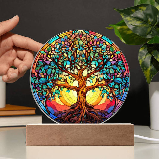 Blue and Gold Stained Glass Tree of Life Custom Clock