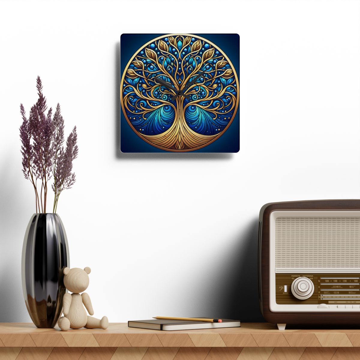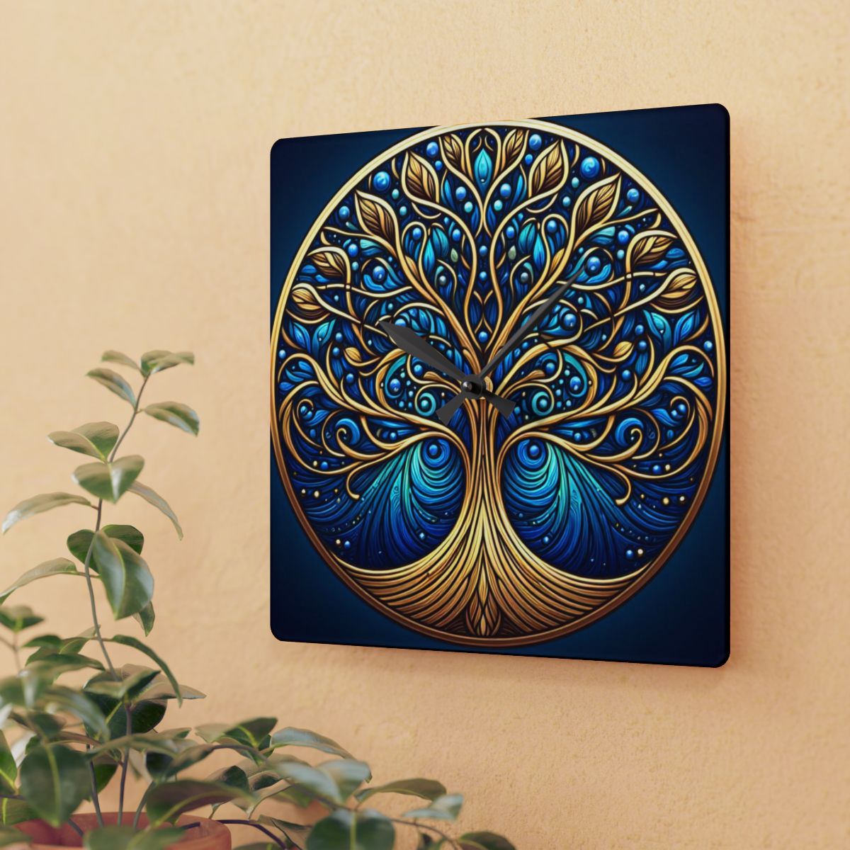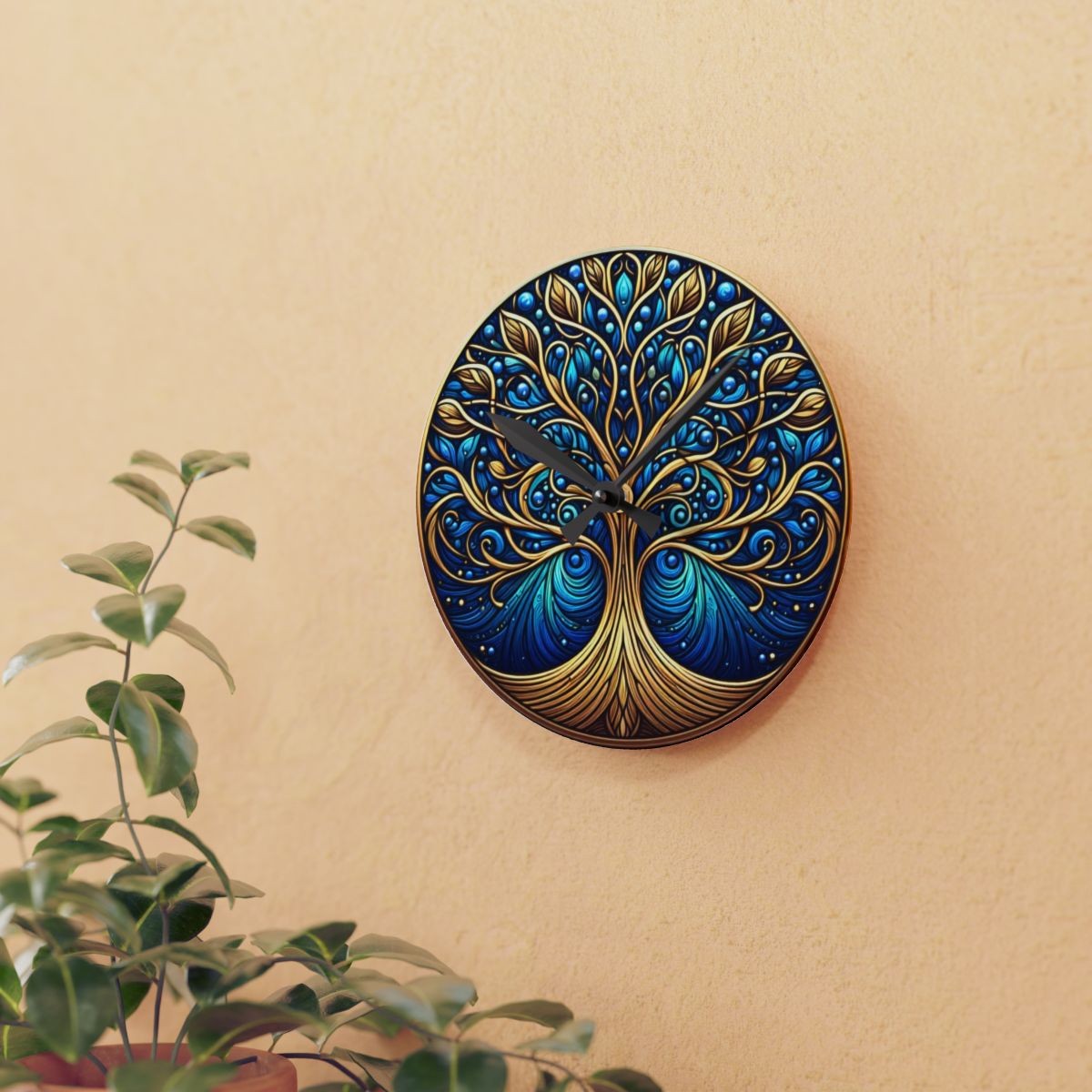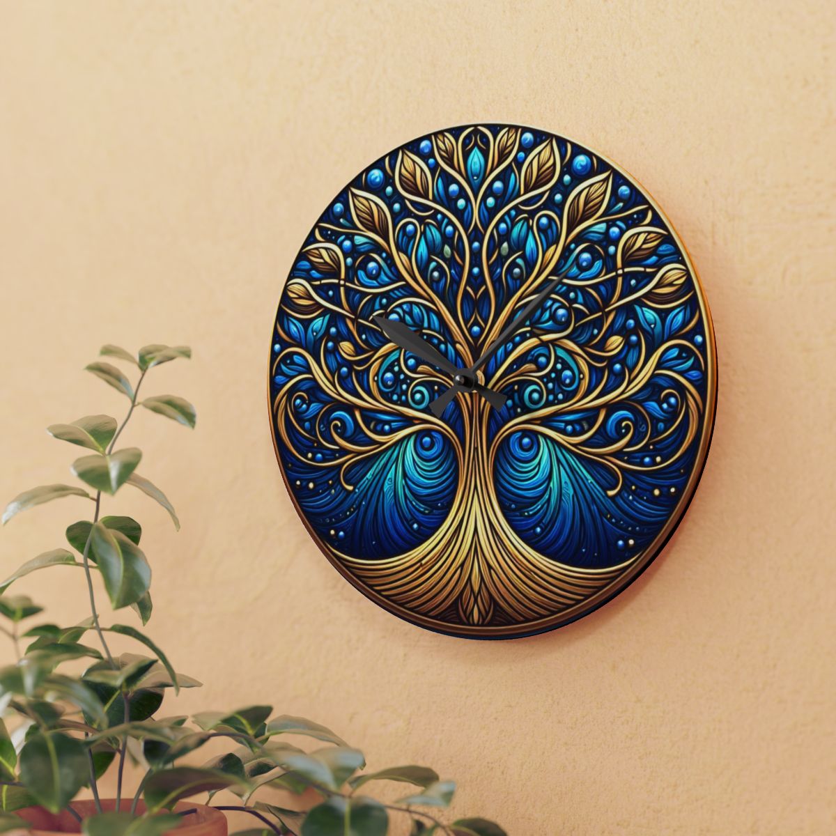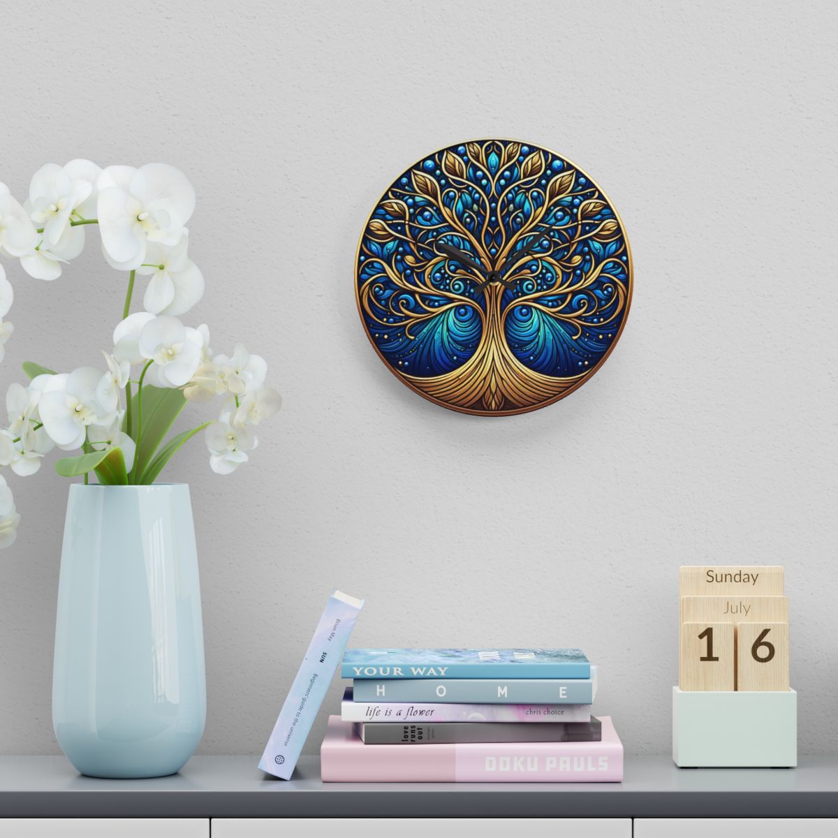 Blue and Gold Stained Glass Tree of Life Custom Clock