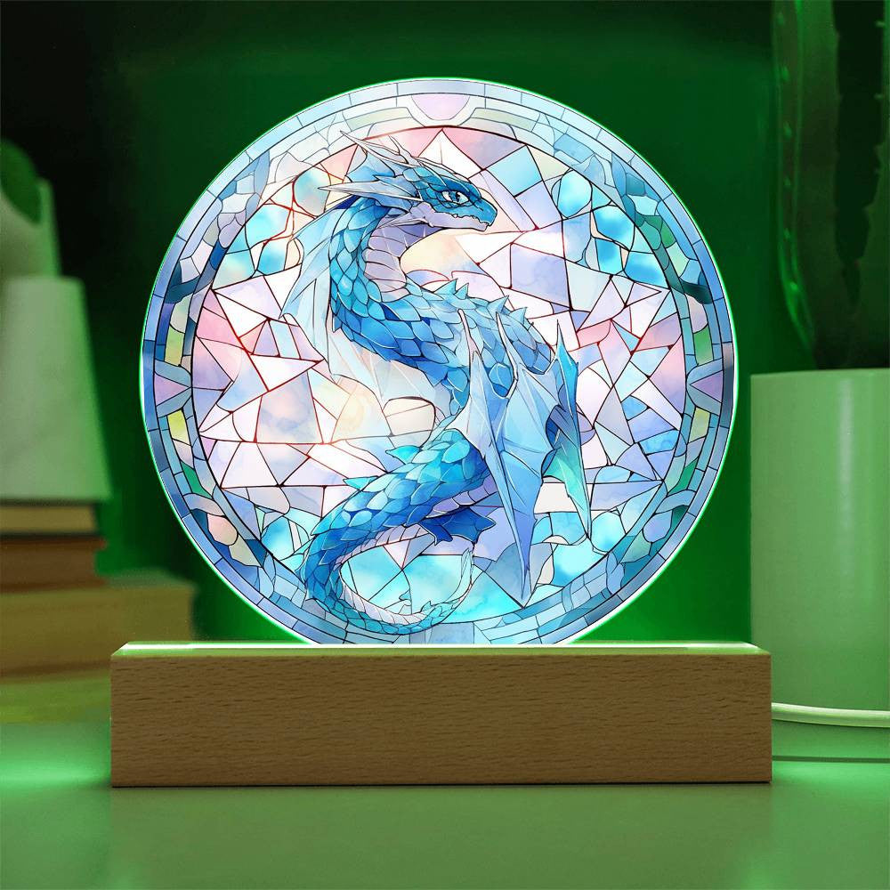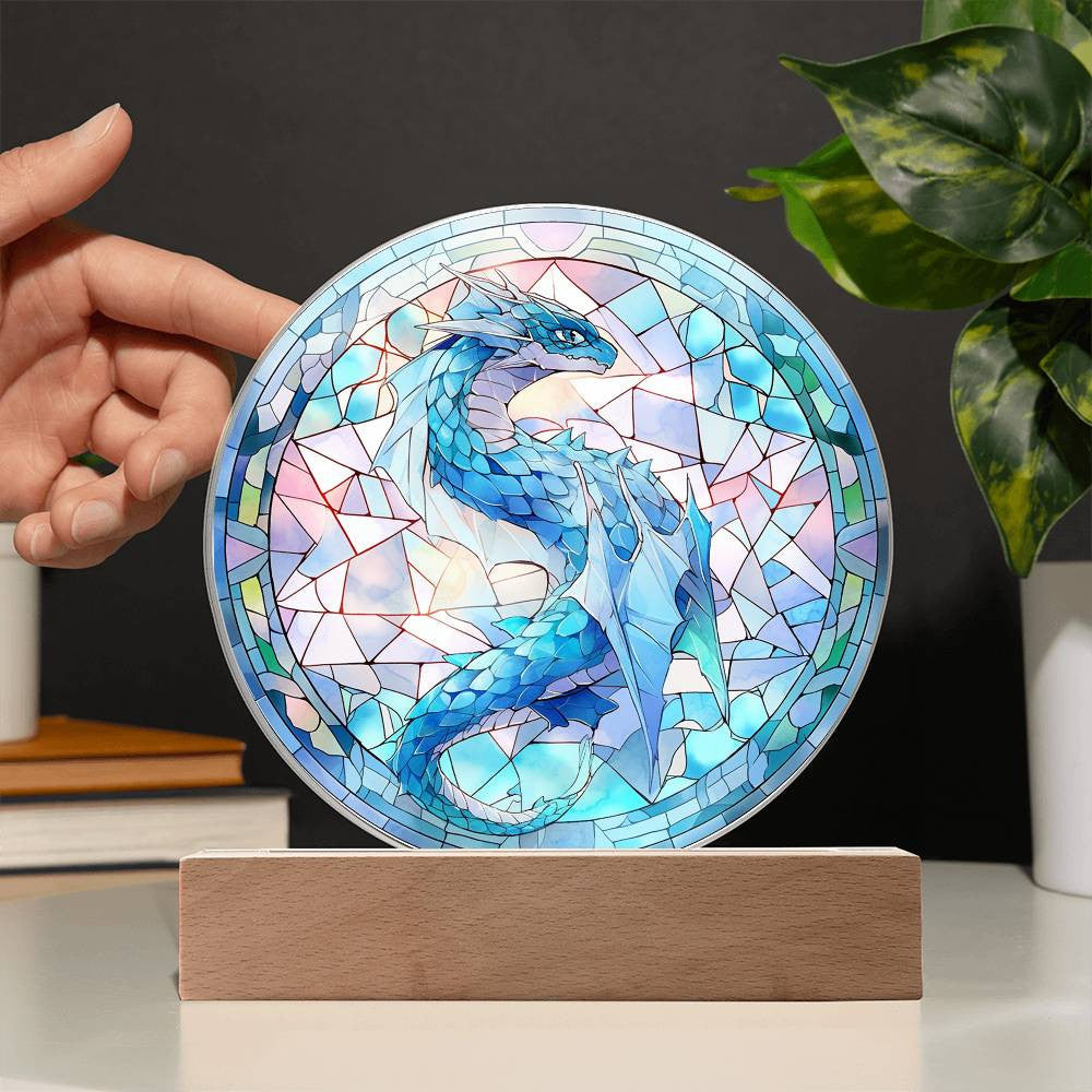 Blue Dragon Stained Glass Plaque and Nightlight