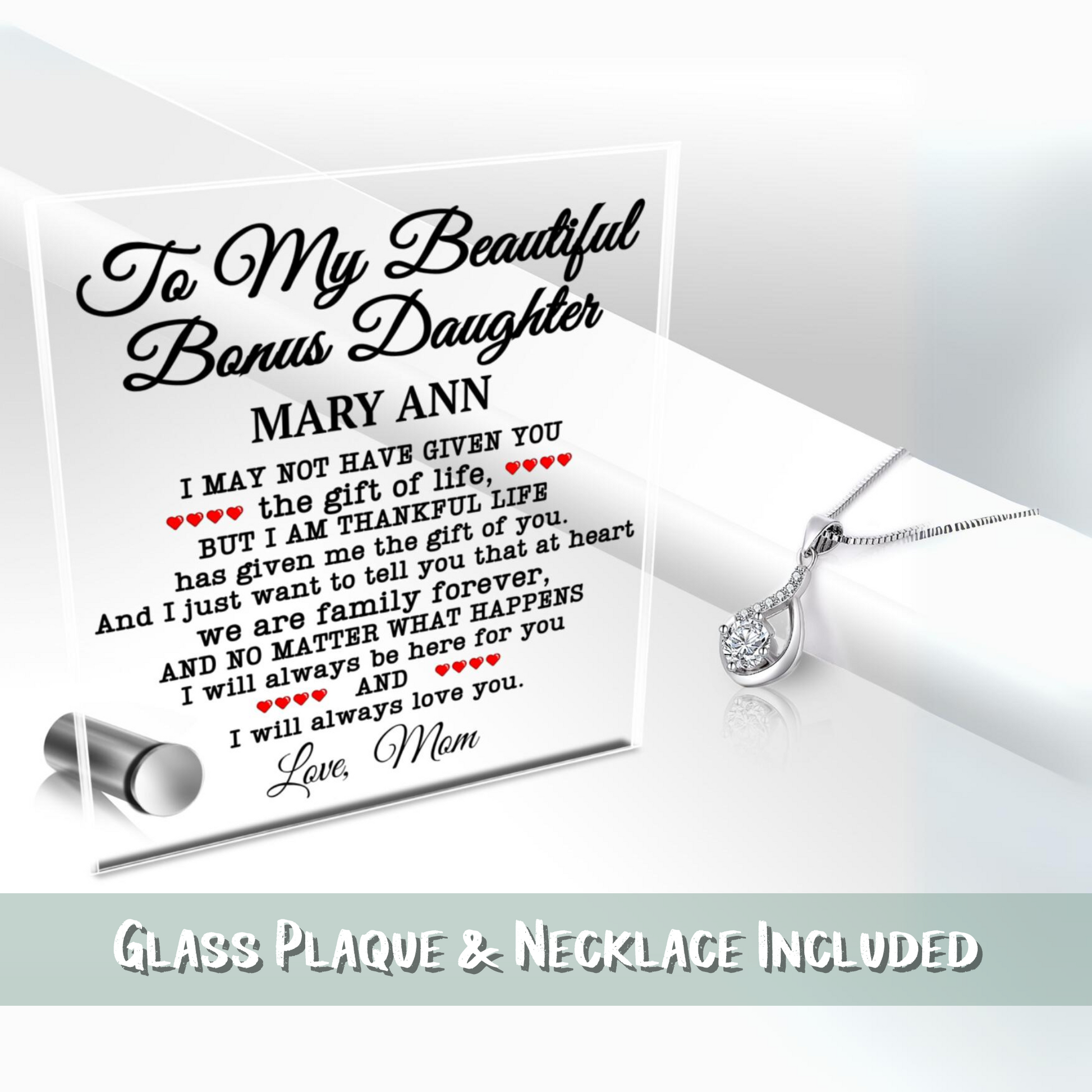 Finding the perfect personalized gift for your stepdaughter can be a heartfelt way to show her how much she means to you in a blended family. This special stepdaughter gift not only celebrates the bond between stepmom and bonus daughter but also makes for a meaningful gesture on occasions like birthdays, Christmas, or weddings. Whether it's a thoughtful birthday gift or something heartfelt to mark her role in your family, this gift is ideal for any daughter of the bride or groom. Show your love and appreciation with this unique present, which can also serve as a beautiful reminder of your special connection, making it a great choice for foster daughters and adopted daughters alike. Give her a gift that she will cherish for years to come, a true reflection of the love within your blended family.