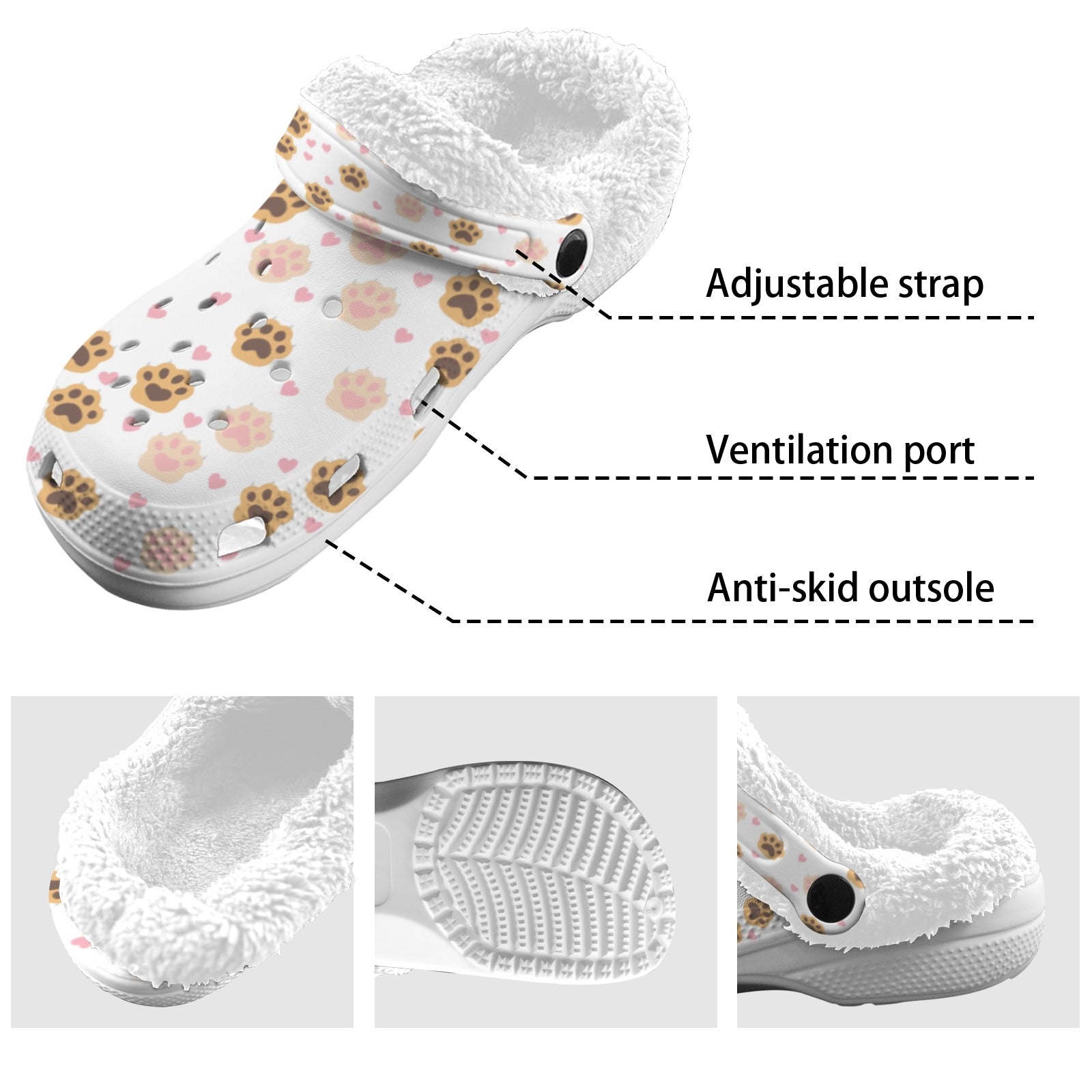 Cozy Comfort: Cat Paw Fleece Lined Unisex Adult Clog Shoes for Ultimate Warmth