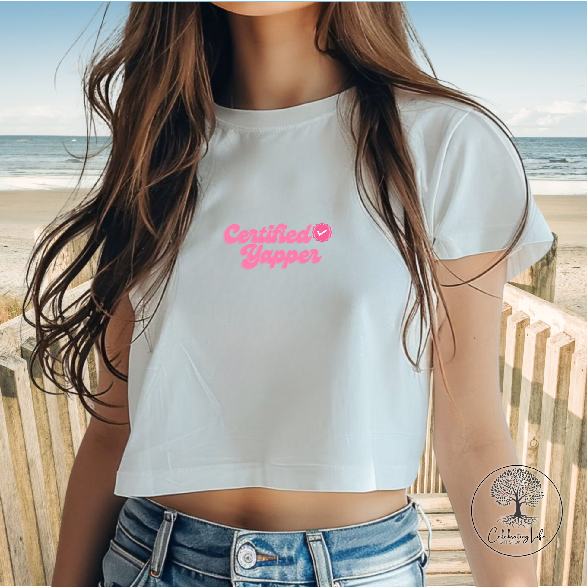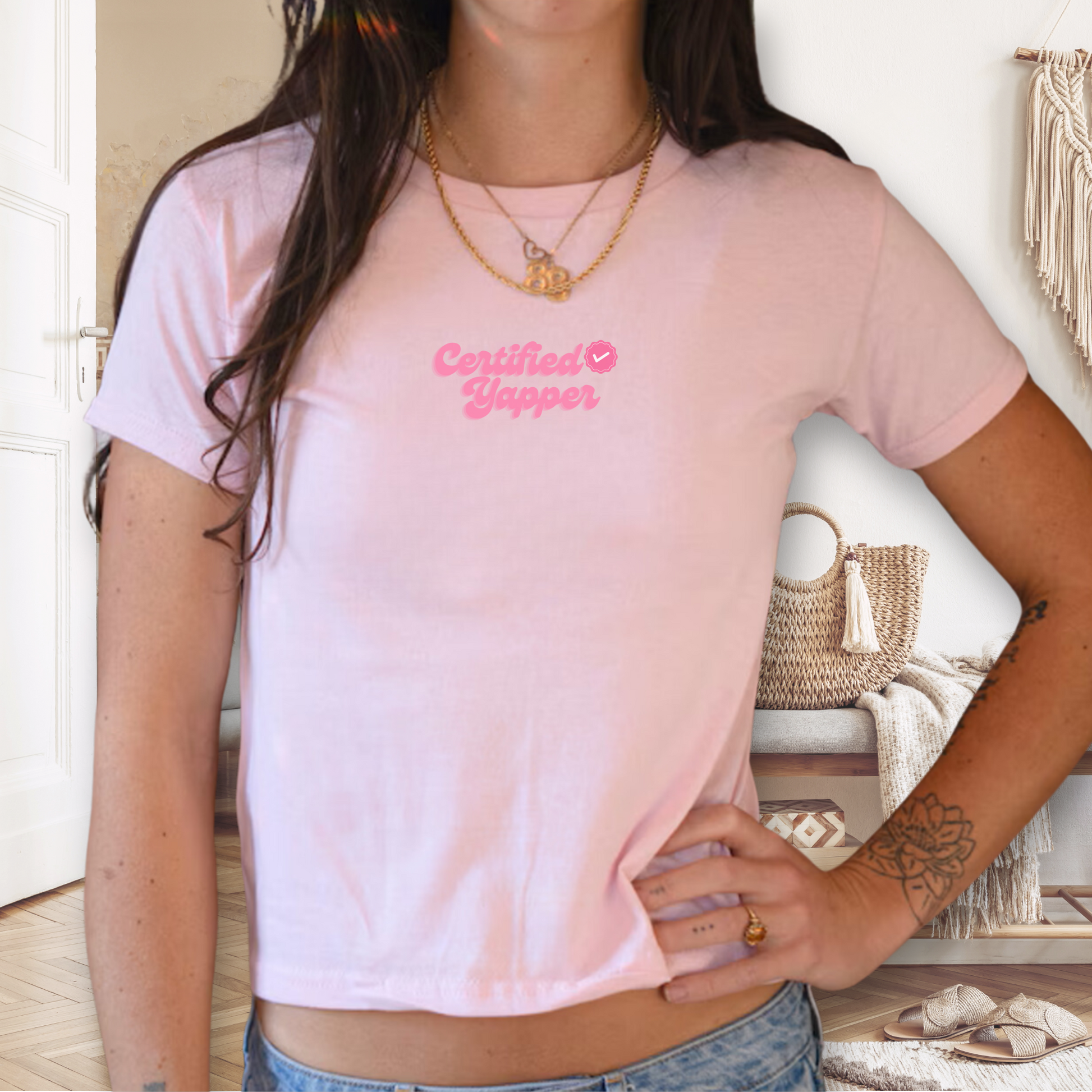 Get ready to add a touch of humor and style to your wardrobe with the "Certified Yapper Baby Tee"! This funny baby tee is the perfect addition to your Y2K clothing collection, offering a trendy and girly aesthetic that's sure to turn heads. Whether you're into baby tshirts or looking for a unique gift for your girlfriend or a special girl in your life, this 90s-inspired tee is a must-have. Embrace your inner yapper and show off your fun personality with this "Certified Yapper Baby Tee" shirt that combines retro vibes with a modern twist. Perfect for creating cute and casual looks that exude confidence and style!