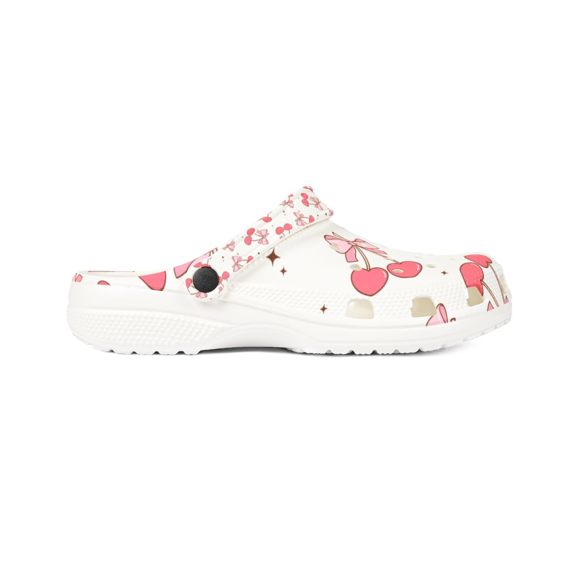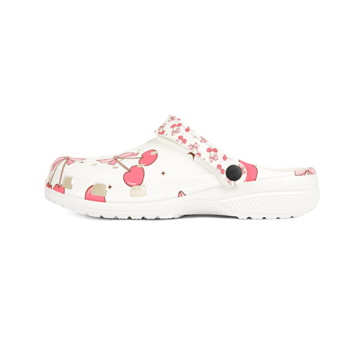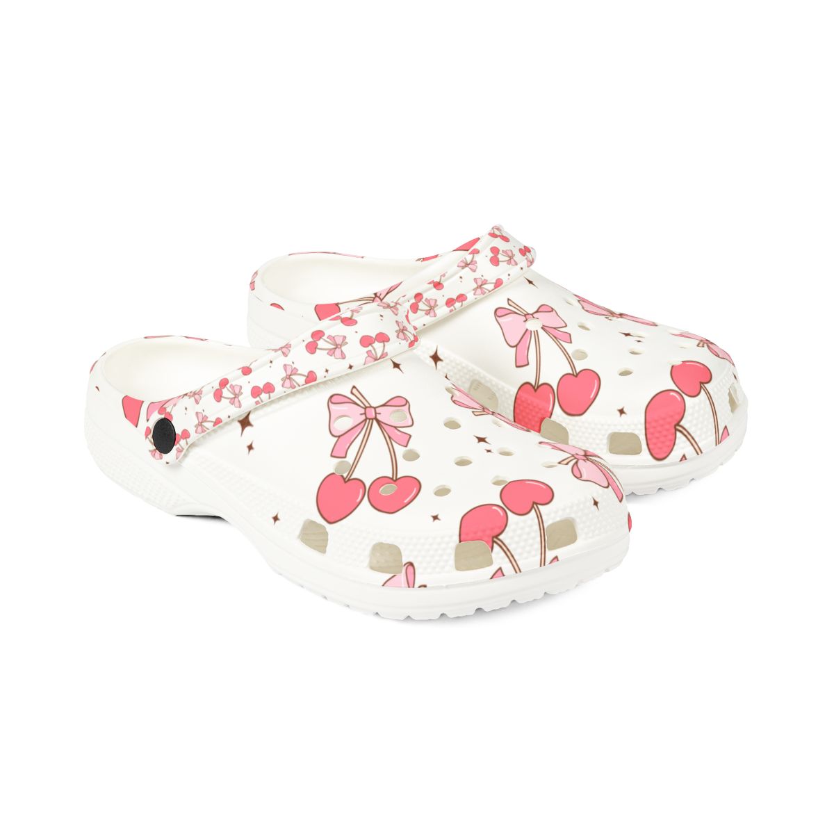 Add a pop of cherry-sweet charm to every step! These creamy white slip-ons are sprinkled with rosy red cherries, dainty pink bows, and tiny gold polka dots—capturing the fruit-core and kawaii trends lighting up Etsy and Pinterest. Feather-light, water-friendly EVA foam keeps each stride cloud-soft, from garden paths and orchard visits to poolside lounging and 12-hour nursing shifts. Flip the pivot strap up for breezy slides or snap it down for a secure stroll, then grab matching pairs so the whole family can cherry-pick comfort together.