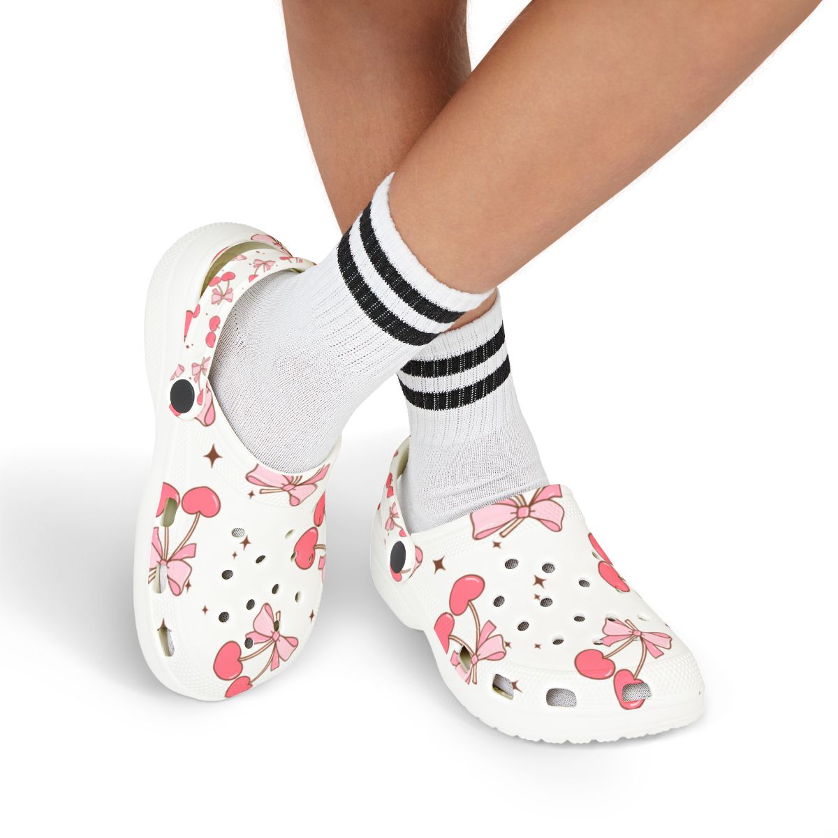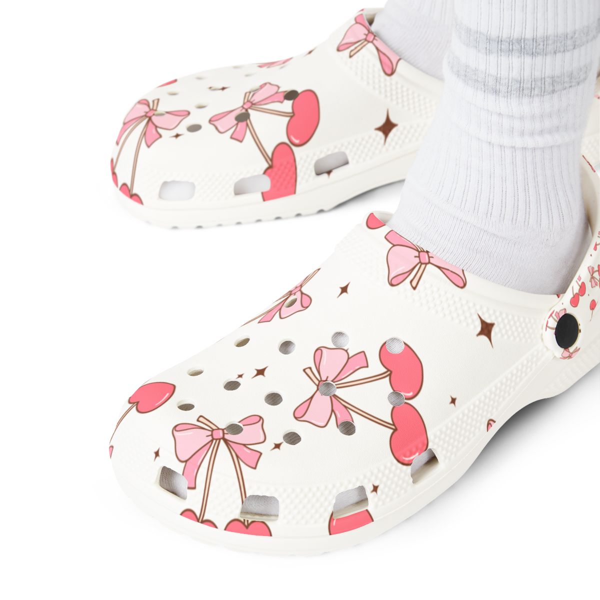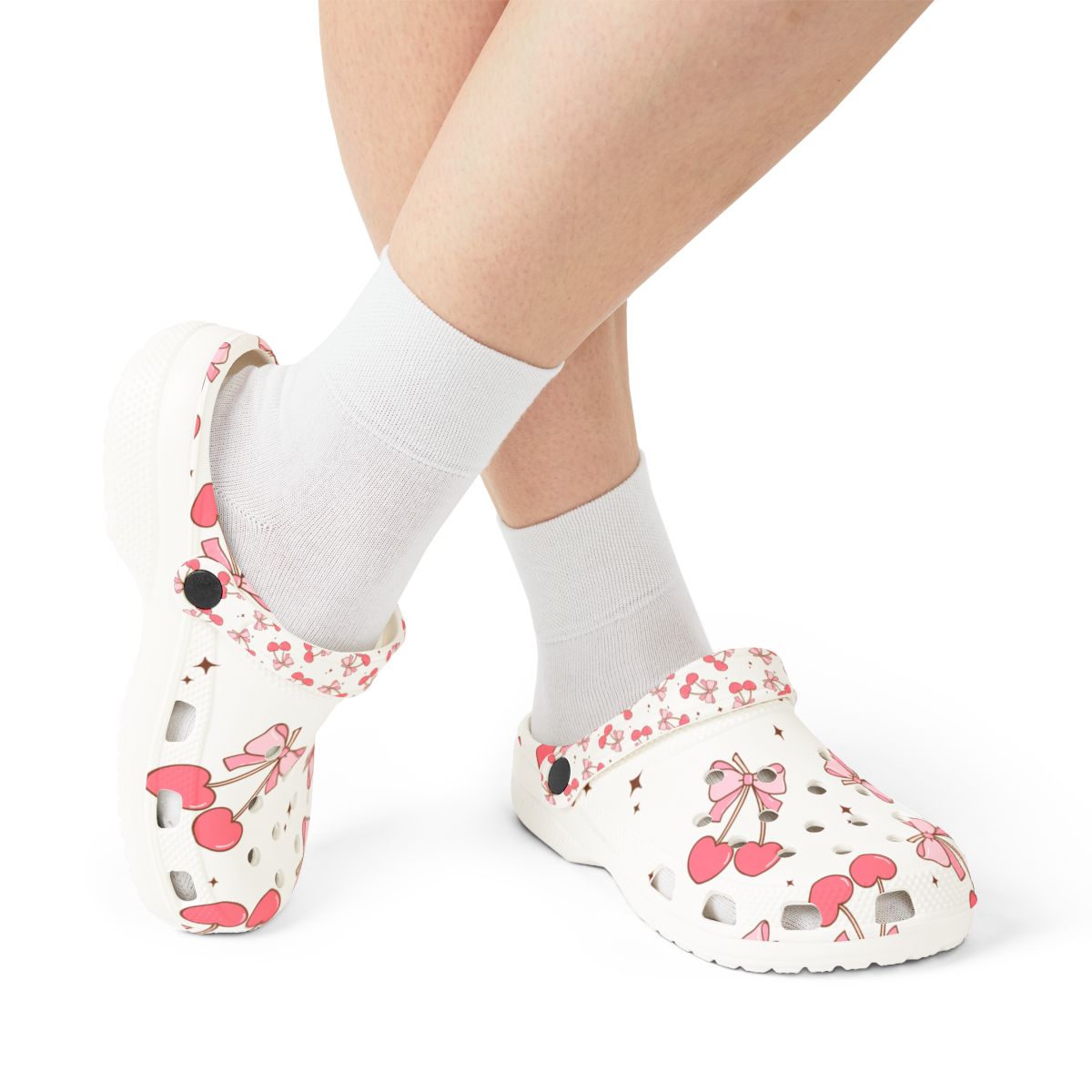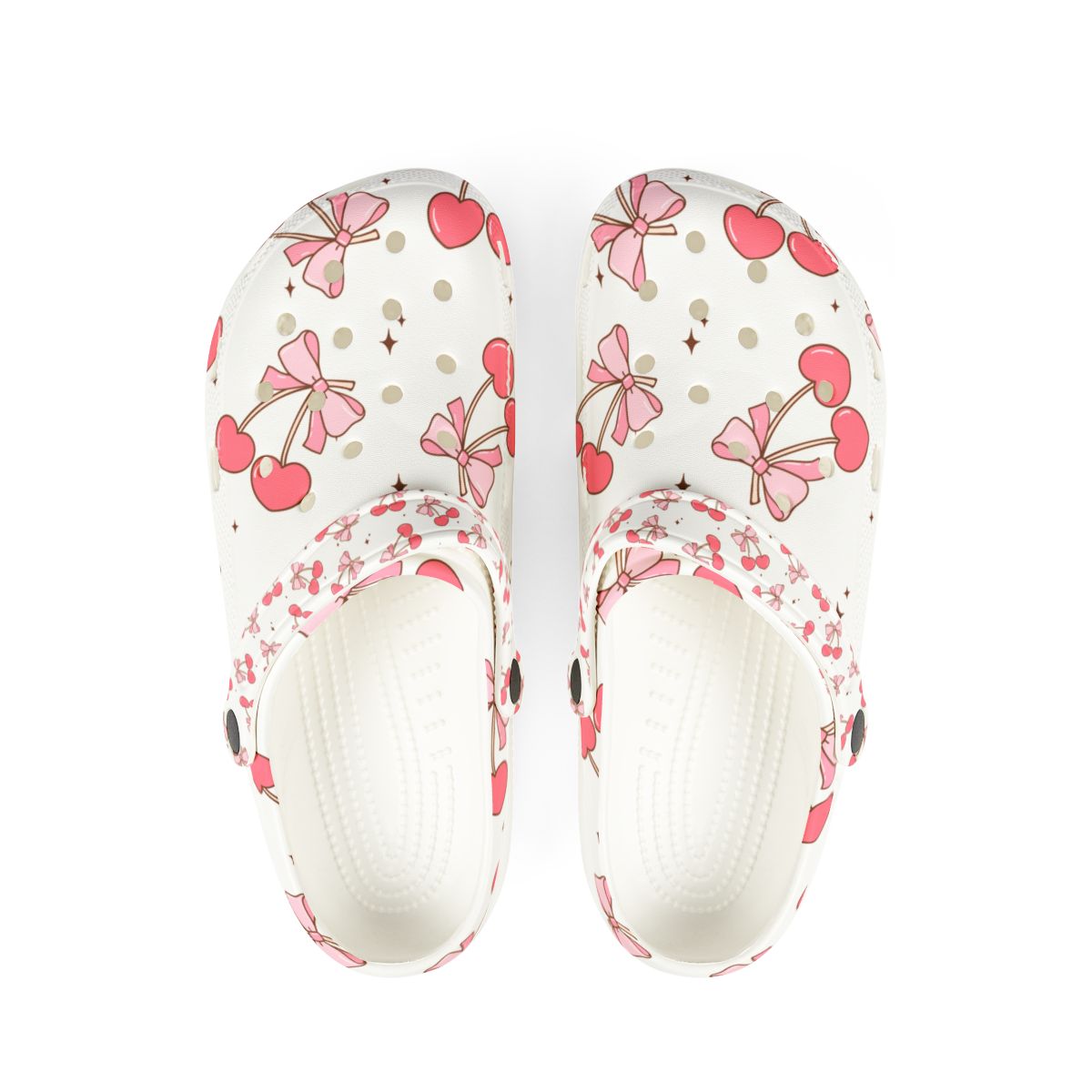 Add a pop of cherry-sweet charm to every step! These creamy white slip-ons are sprinkled with rosy red cherries, dainty pink bows, and tiny gold polka dots—capturing the fruit-core and kawaii trends lighting up Etsy and Pinterest. Feather-light, water-friendly EVA foam keeps each stride cloud-soft, from garden paths and orchard visits to poolside lounging and 12-hour nursing shifts. Flip the pivot strap up for breezy slides or snap it down for a secure stroll, then grab matching pairs so the whole family can cherry-pick comfort together.