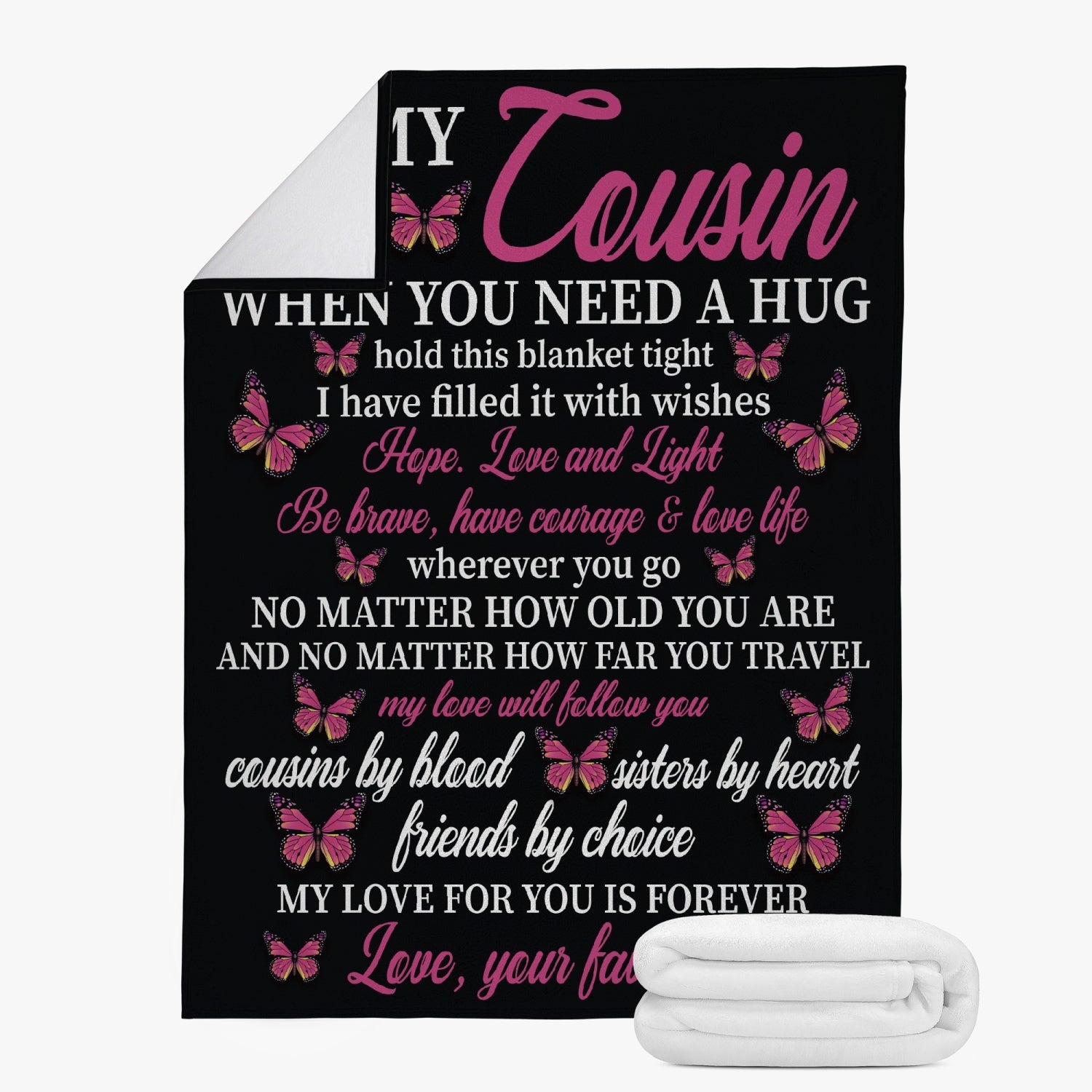 Strength, encouragement, and unbreakable sisterhood—all woven into one beautiful blanket. A dreamy watercolor background with teal wildflowers, fluttering butterflies, and a sweet back-view illustration of two sisters frames the empowering message: “Life is tough but so are you… I am always right there in your heart.” Perfect for birthdays, care packages, or “just because,” it’s a daily hug from one sister to another.