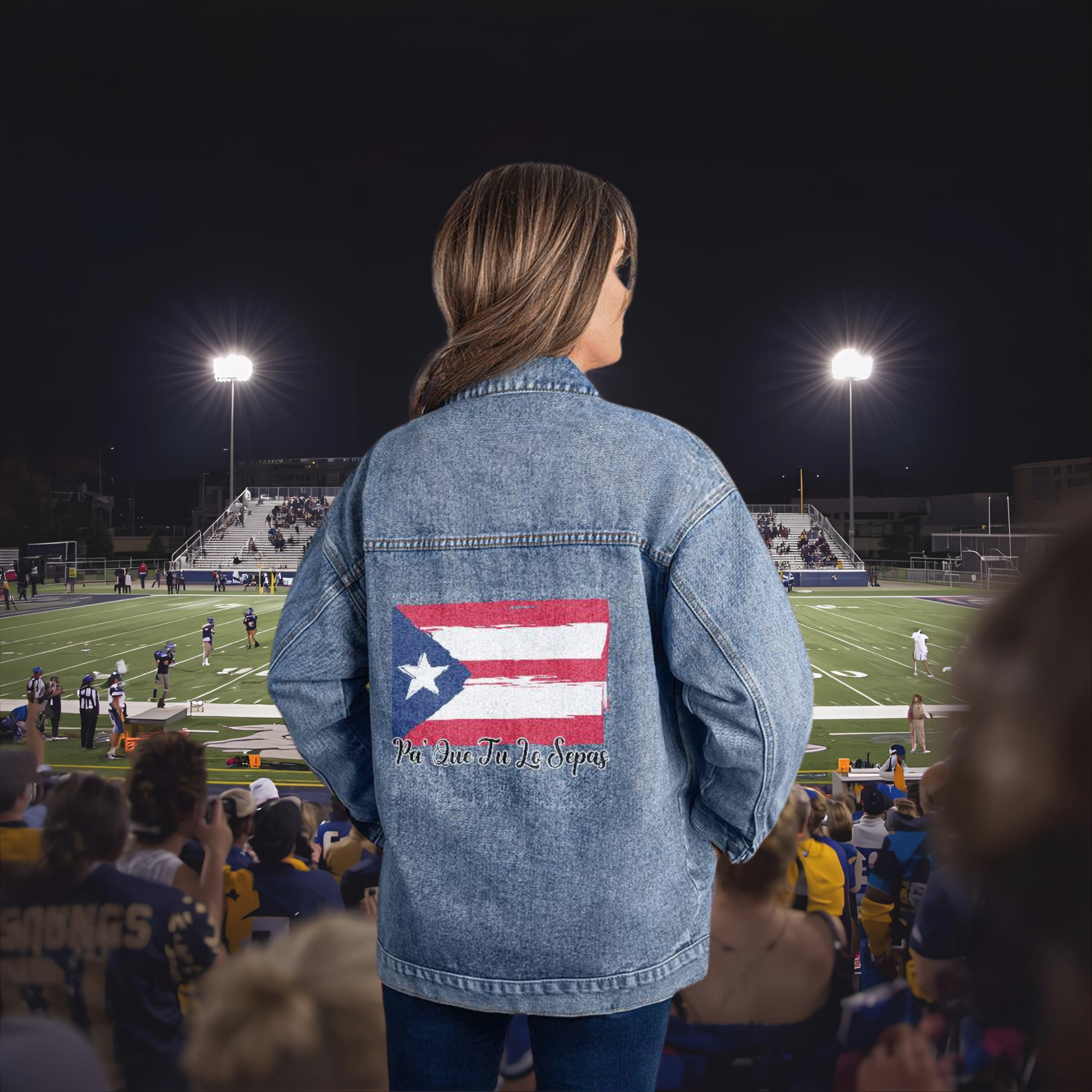 Unisex Puerto Rico Pa' Que Tu Lo Sepas Flag Denim Jacket