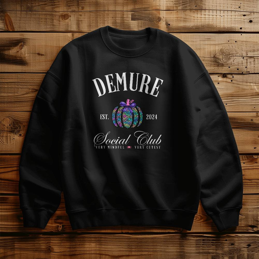 Looking for the perfect blend of style and comfort this Halloween? Check out our Demure Halloween Sweatshirt, a delightful addition to your wardrobe that captures the essence of cute witch vibes. This spooky Halloween shirt embraces the "old money aesthetic" and "clean girl aesthetic" favored by social media stars on TikTok. Whether you're attending a Halloween party or enjoying a cozy night in, this funny meme shirt stands out while keeping you comfortable. With its very mindful design from the Demure Social Club, it's the ideal choice for fans of coquette clothing and humor. Embrace the spooky season in a very demure shirt that will surely be a hit and make a fantastic TikTok gift for those who love cute Halloween fashion!