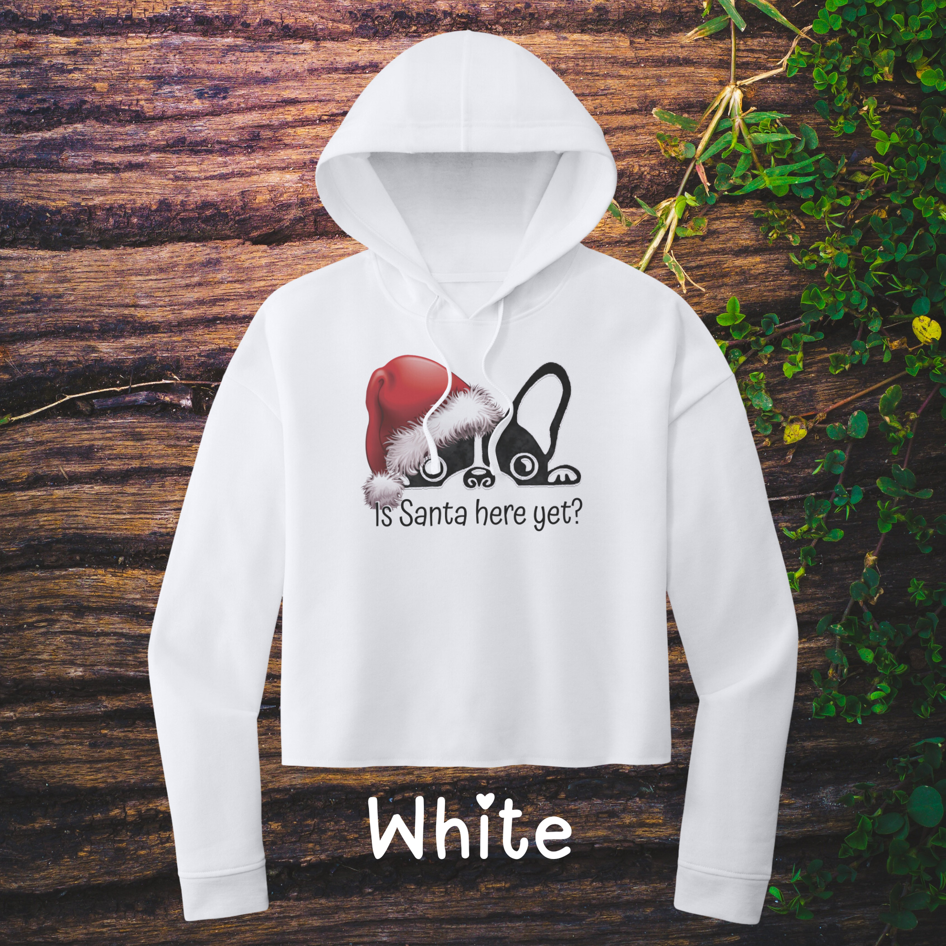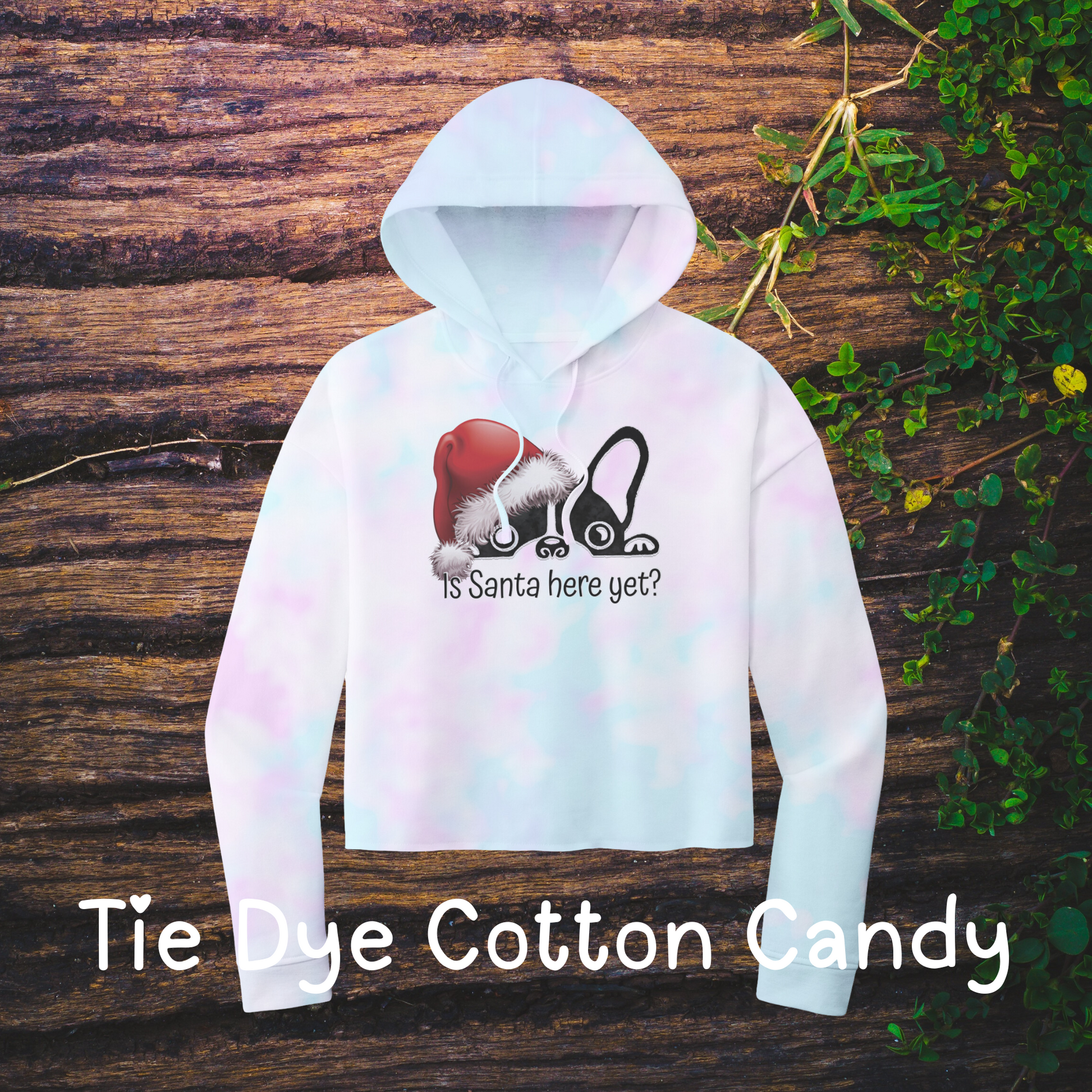 Personalized Dog Lover Santa Lightweight Crop Hoodie Sweatshirt available in 5 colors including our popular Tie Dye Cotton Candy!