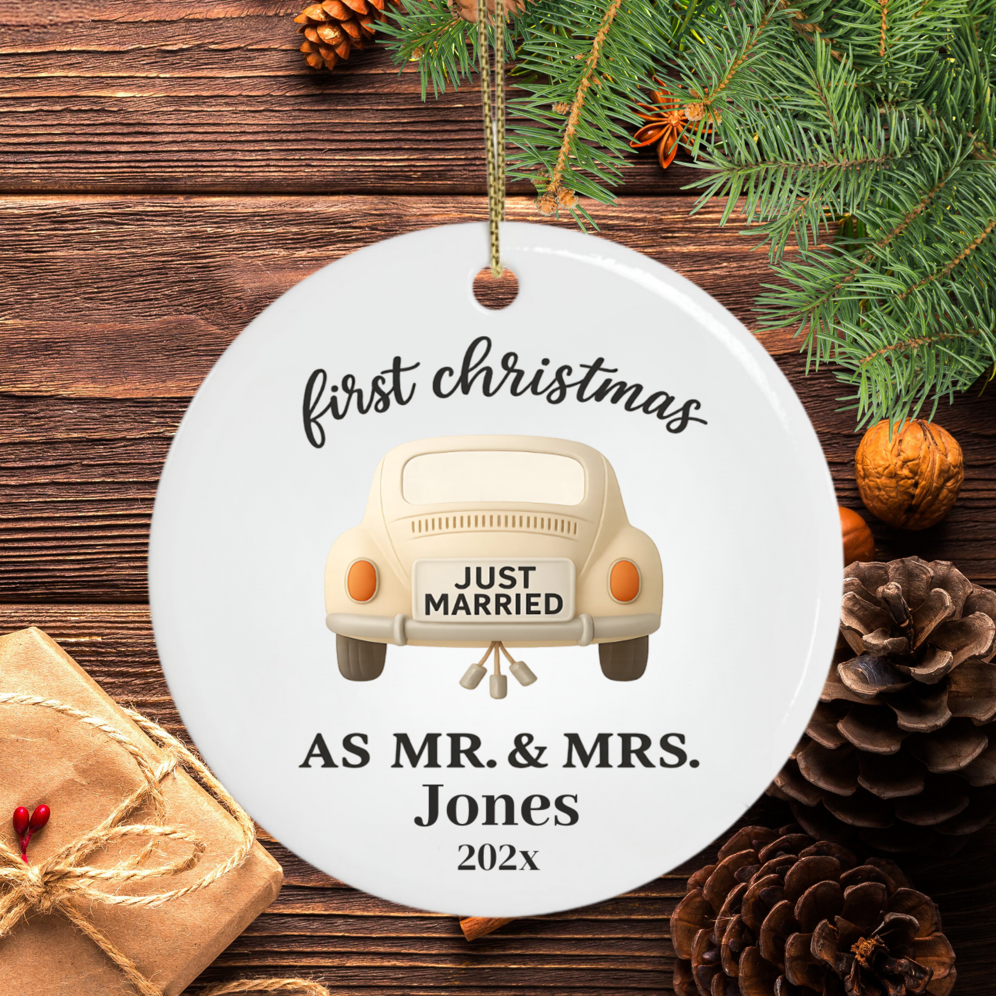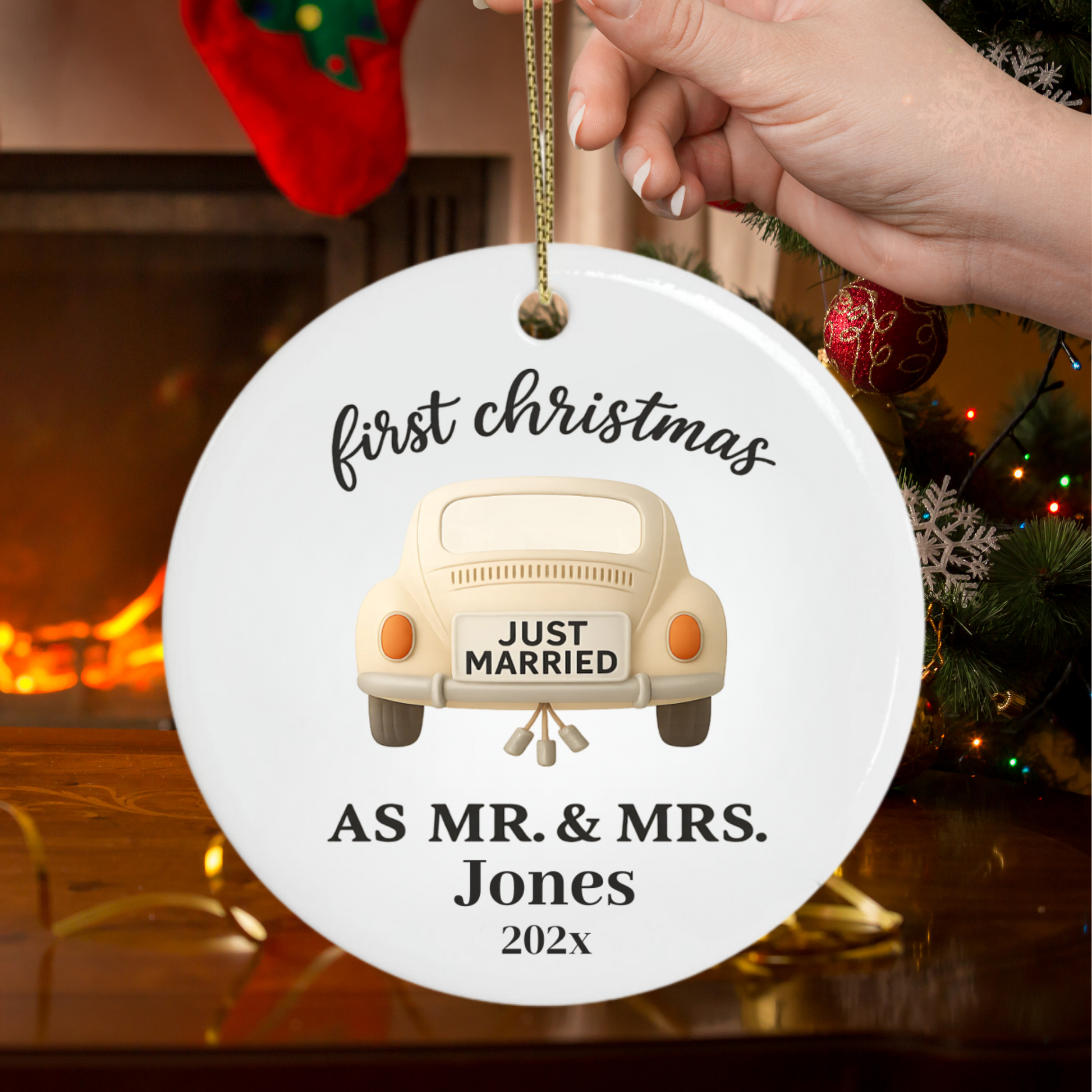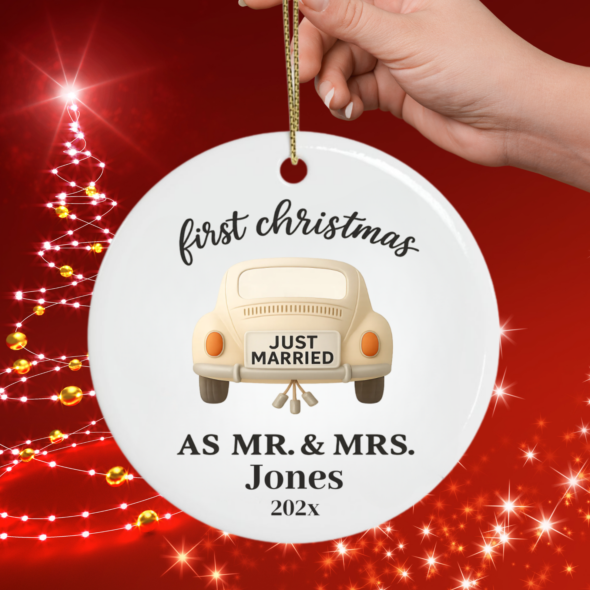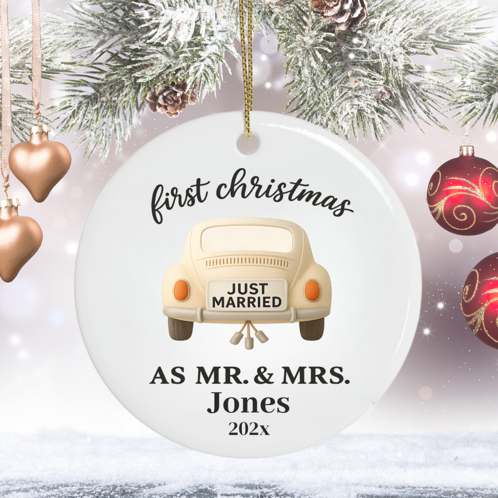 First Christmas Married Ornament, Just Married Car 2025, Our First Christmas Married Keepsake, Personalized Ornament
