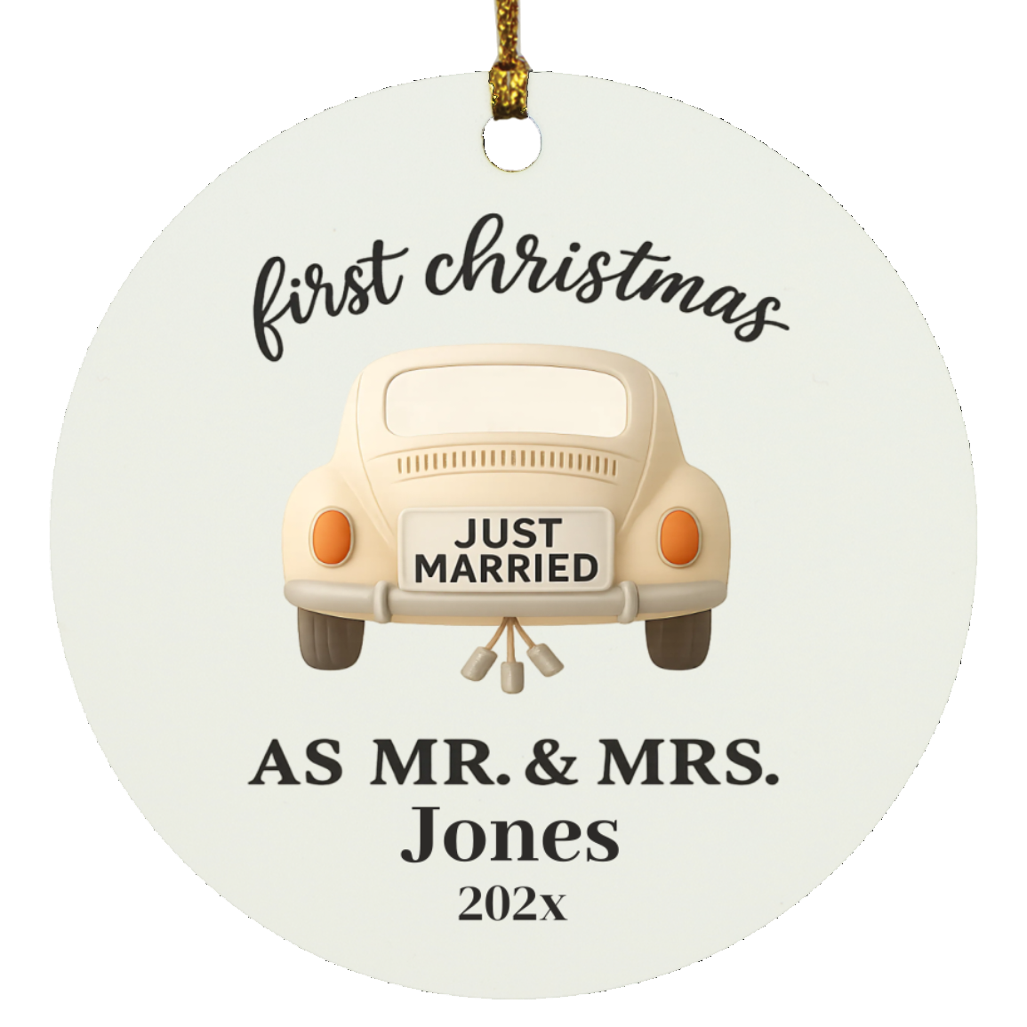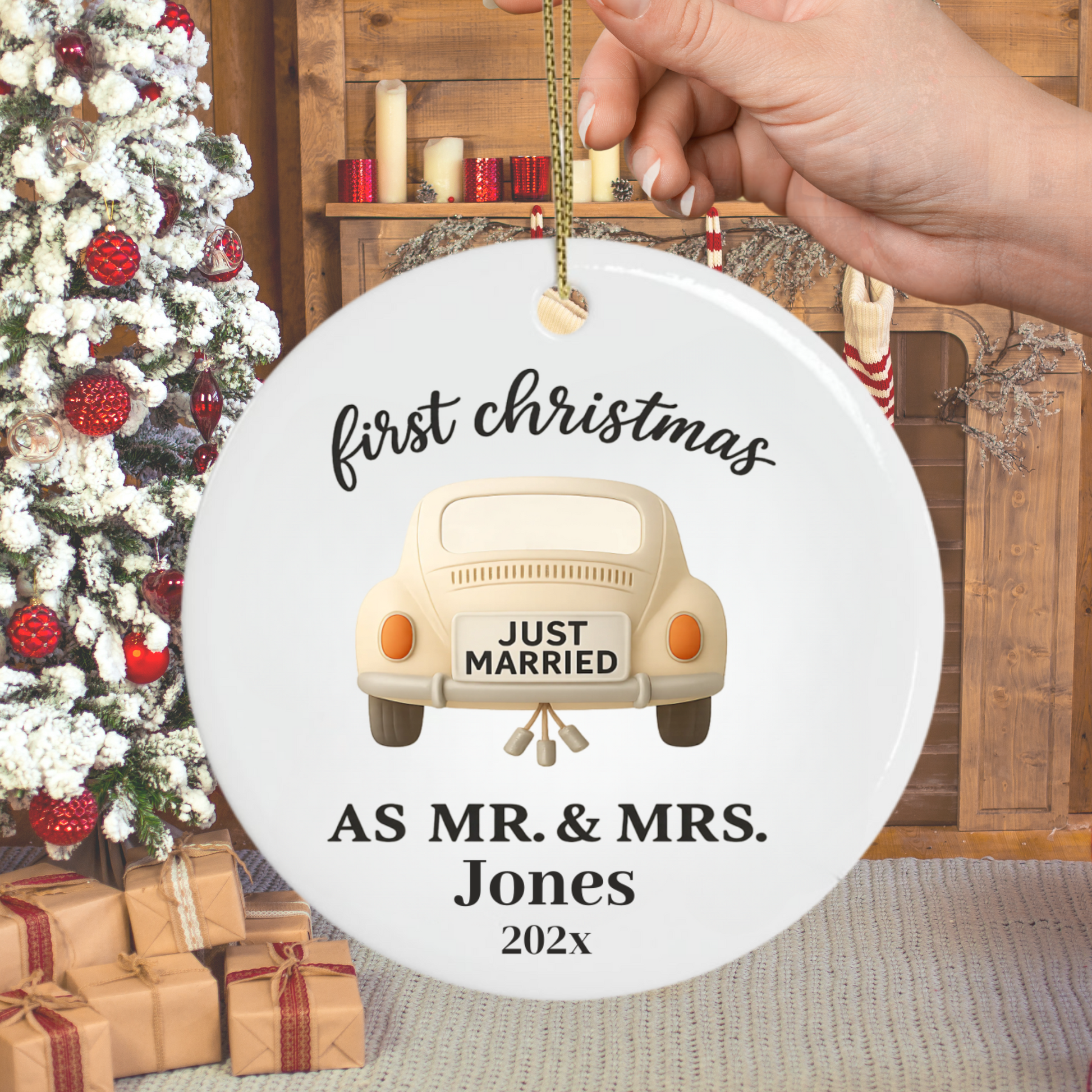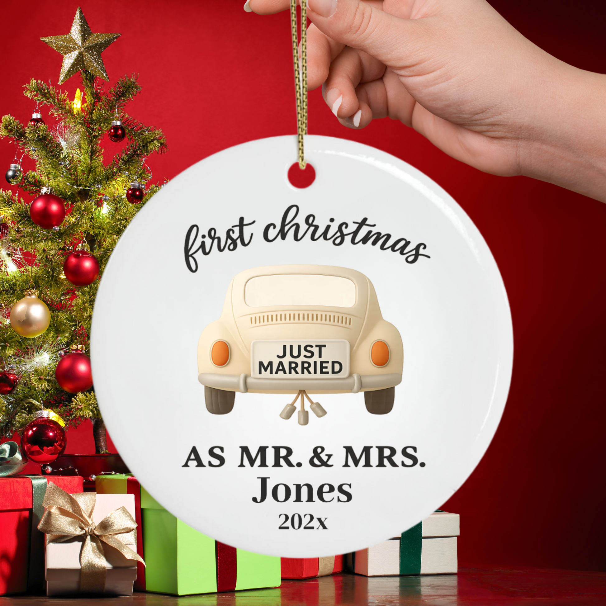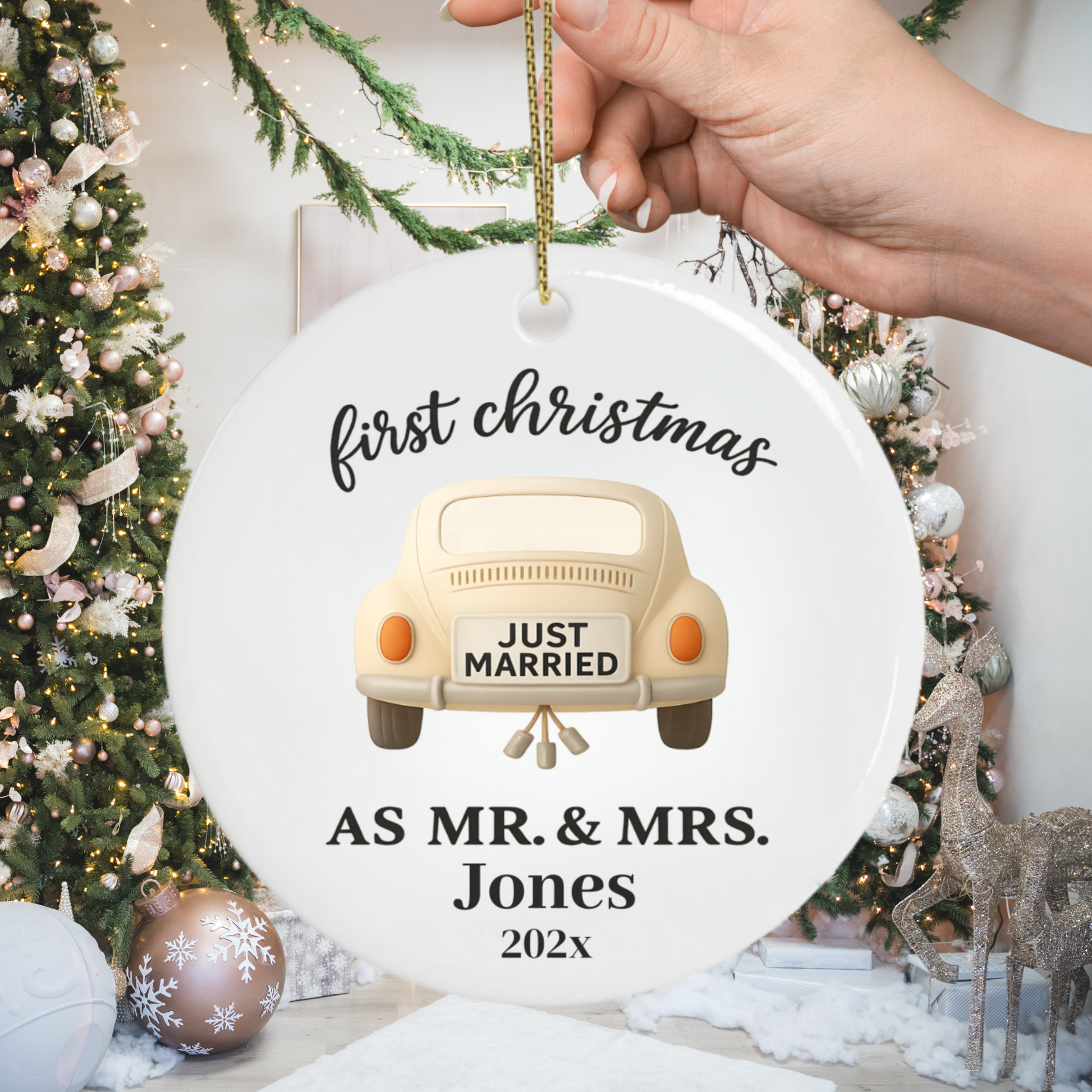 First Christmas Married Ornament, Just Married Car 2025, Our First Christmas Married Keepsake, Personalized Ornament