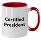 Funny President Quote Two Tone Coffee Mugs Gifts from Men to President on Mother's Day, Certified President Gifts, Unique Two Tone Mugs, President Enthusiasts, Gifts for President