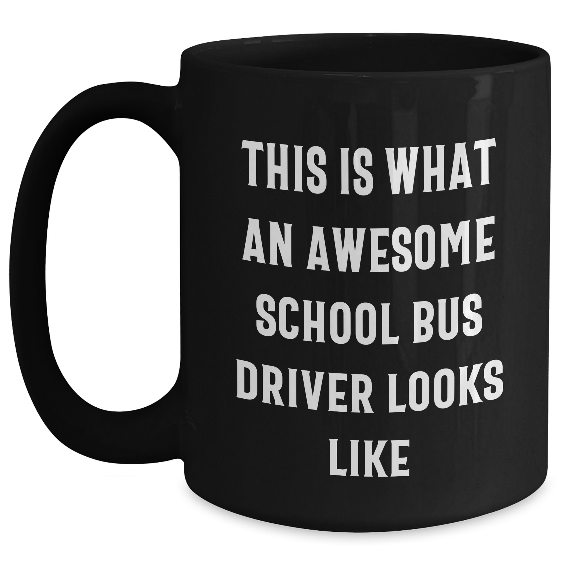 Funny School Bus Driver Quotes Gifts from Family for Mother's Day Black Coffee Mug, This Is What An Awesome School Bus Driver Looks Like, Unique Gifts for School Bus Driver