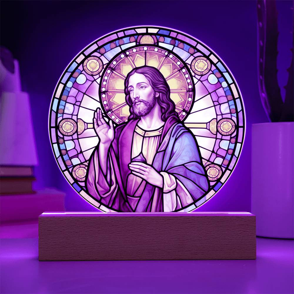 Your plaque will be crafted from premium acrylic with a professionally printed design for a polished look. It comes with a stylish wooden LED base, and you can choose between a USB plug-in option OR a cordless battery-operated option (requires 2 AAA batteries, not included). Both LED bases feature 7 vibrant colors, allowing the user to customize the lighting with various color changes and dynamic cycles.