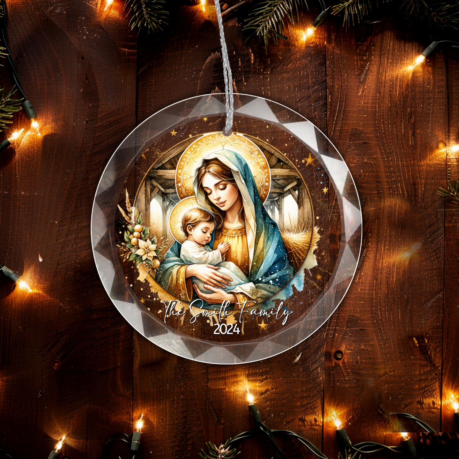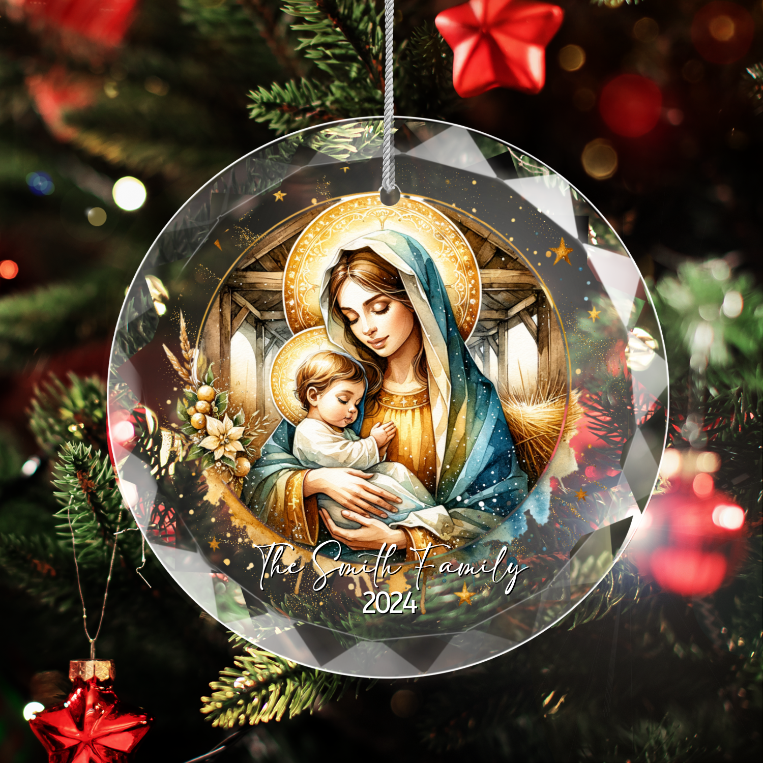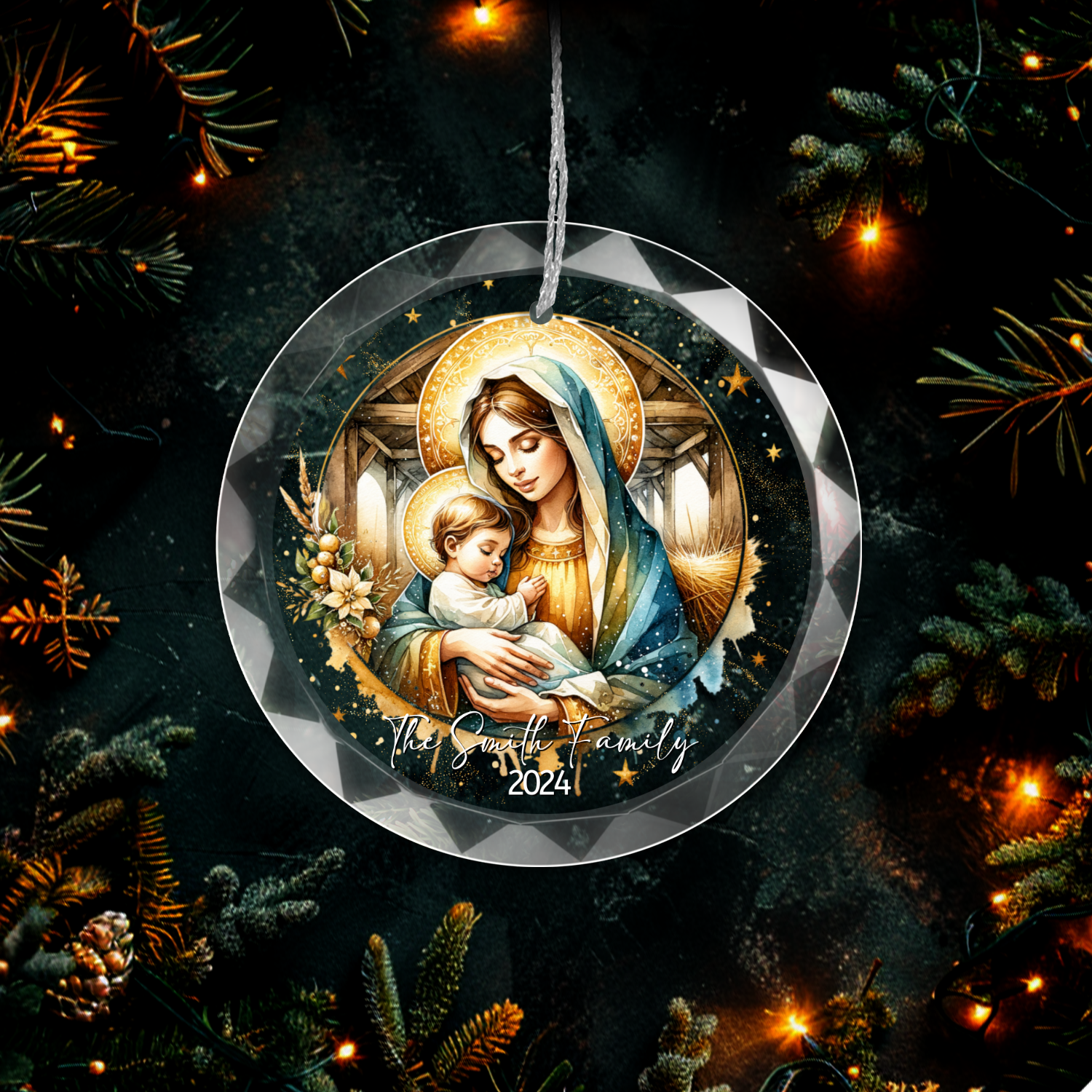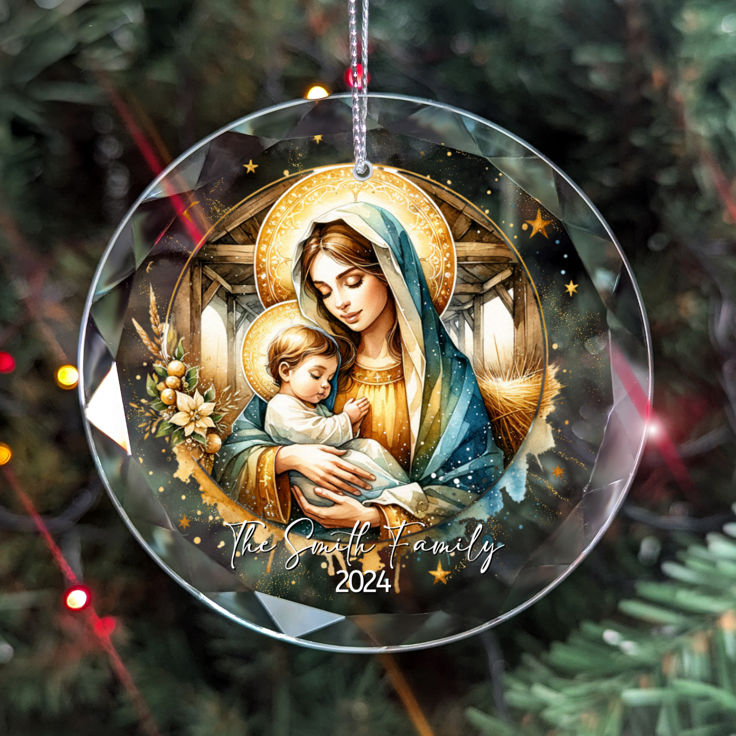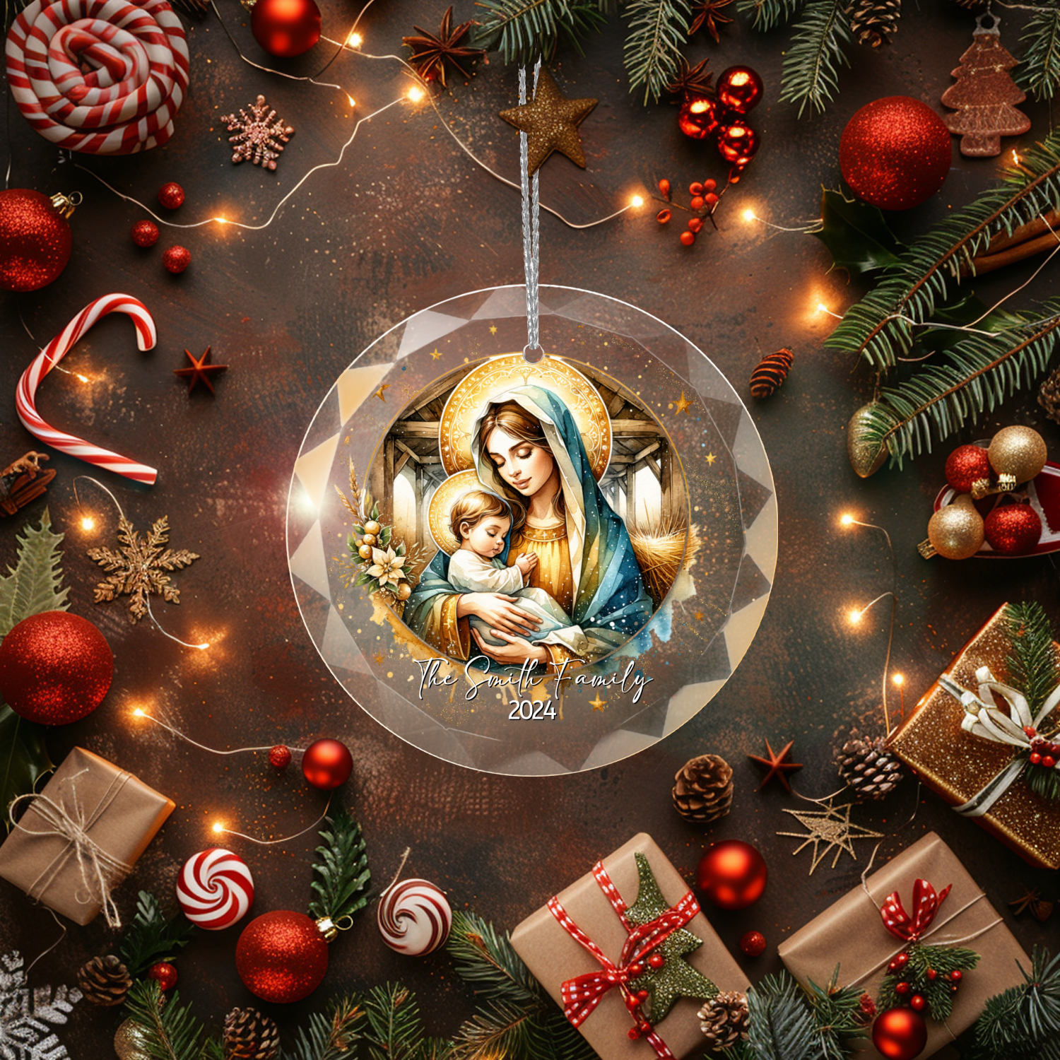 Celebrate the true meaning of Christmas with our beautiful personalized Mary and Baby Jesus Nativity Ornament. This custom nativity scene ornament makes a perfect addition to your Christmas tree decor, showcasing the beloved baby Jesus in fine detail. Crafted from high-quality glass, this Christian ornament is not only a stunning decoration but also a heartfelt religious gift that can be personalized with your family name. Ideal for stocking stuffers or as a thoughtful gift for parents, this nativity Christmas ornament embodies the spirit of the holiday season. Whether you're searching for the best Xmas gifts or a special Christian Christmas keepsake, our personalized nativity ornament will become a cherished decoration for years to come. Make this Christmas memorable with a unique piece that reflects your faith and family traditions.
