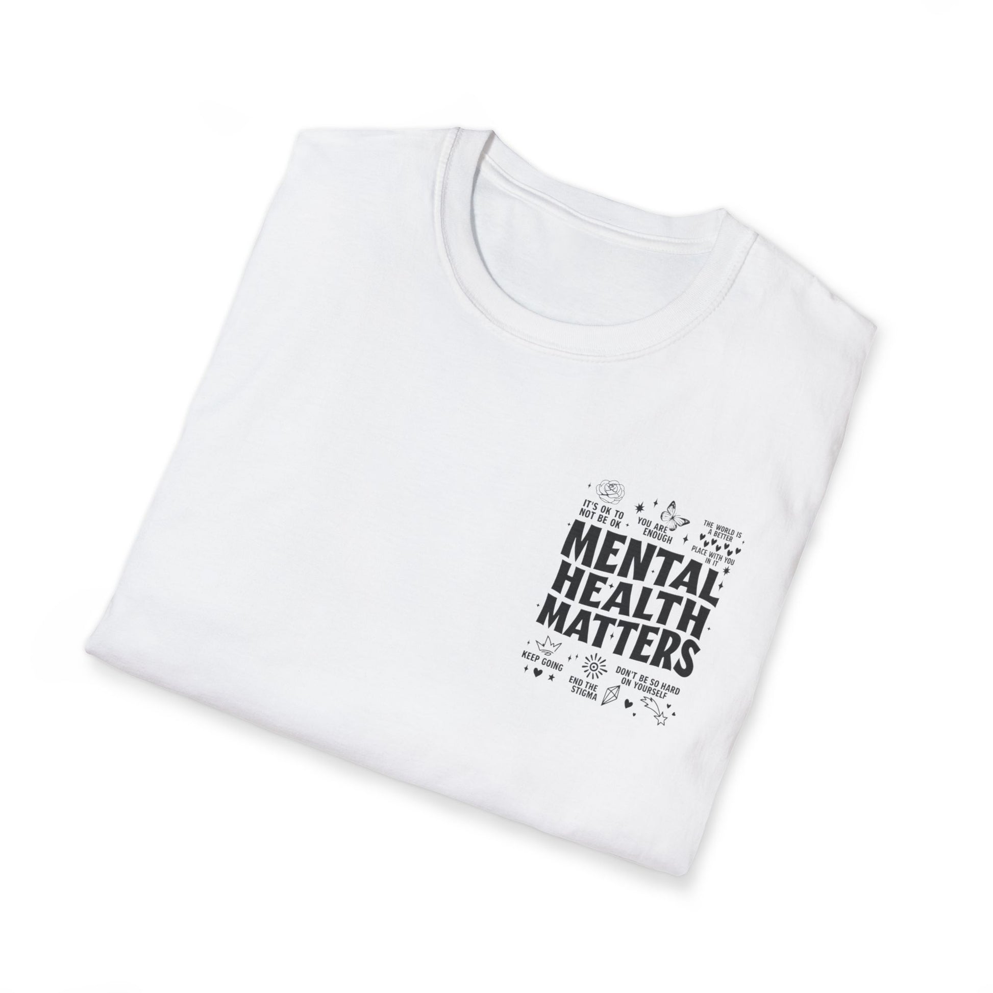 Spread positivity and support with this Mental Health Matters tee. This shirt makes powerful statements on the front and back while staying soft, lightweight, and comfortable for everyday wear. Whether you’re shopping for yourself or as a thoughtful gift, this tee is a meaningful way to show support for mental health awareness.