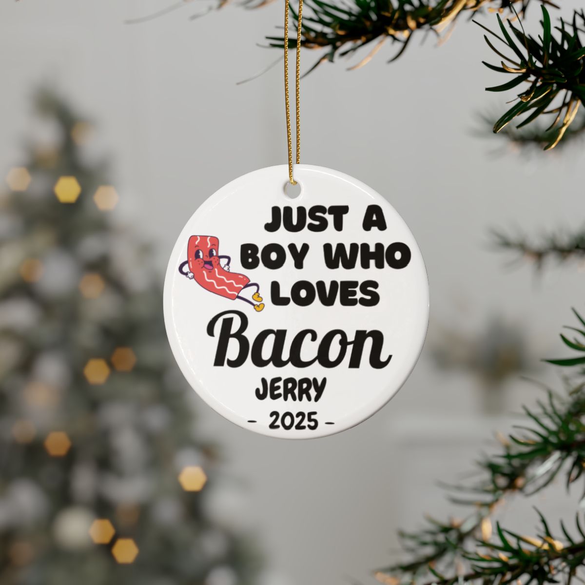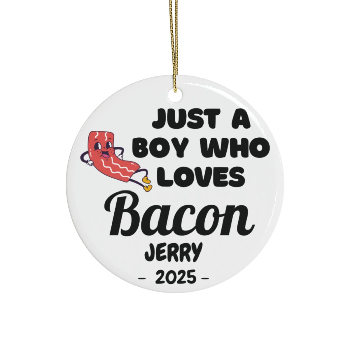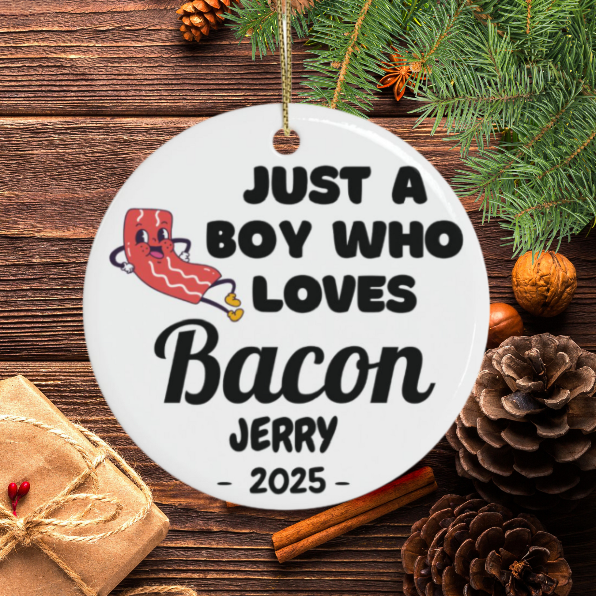 Personalized Bacon Ornament, Custom Just a Boy Who Loves Bacon Holiday Ornament, Bacon Lover Gift Xmas Ornament, Breakfast Lover Ornament