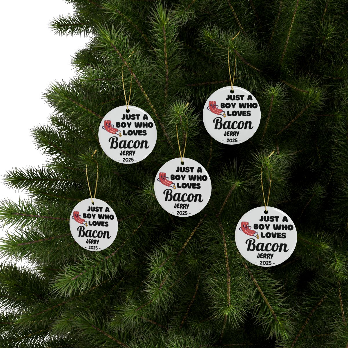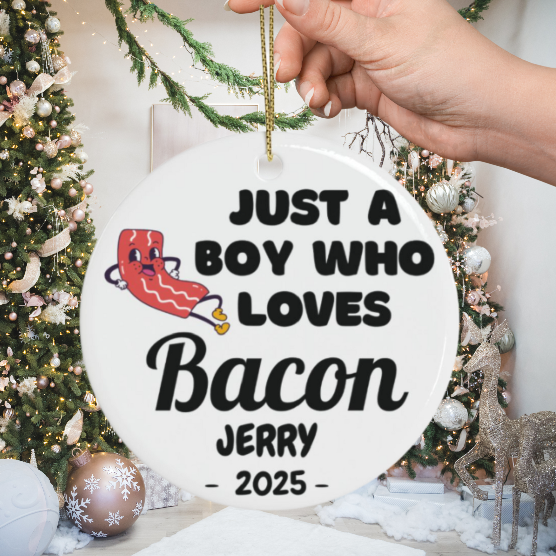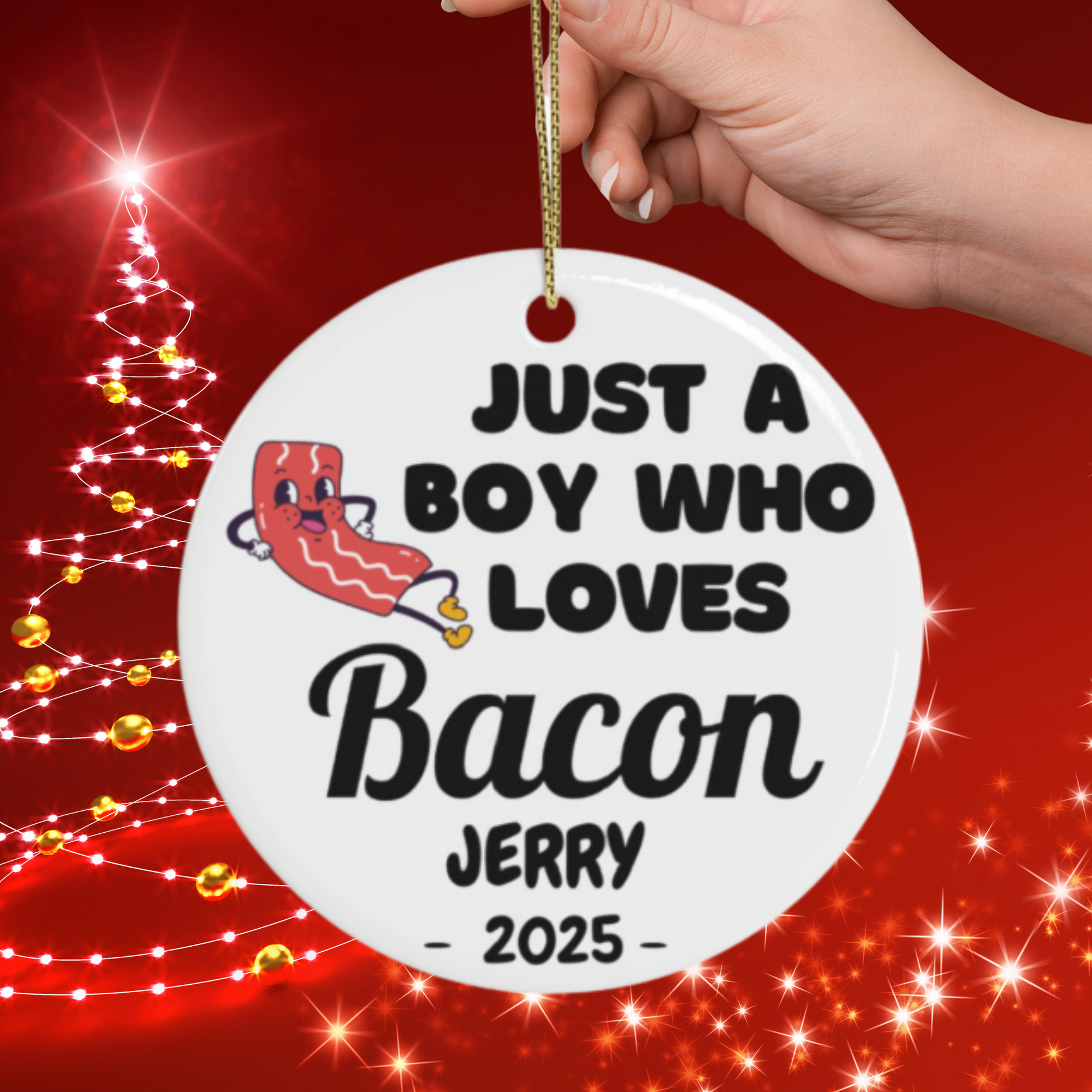 Personalized Bacon Ornament, Custom Just a Boy Who Loves Bacon Holiday Ornament, Bacon Lover Gift Xmas Ornament, Breakfast Lover Ornament