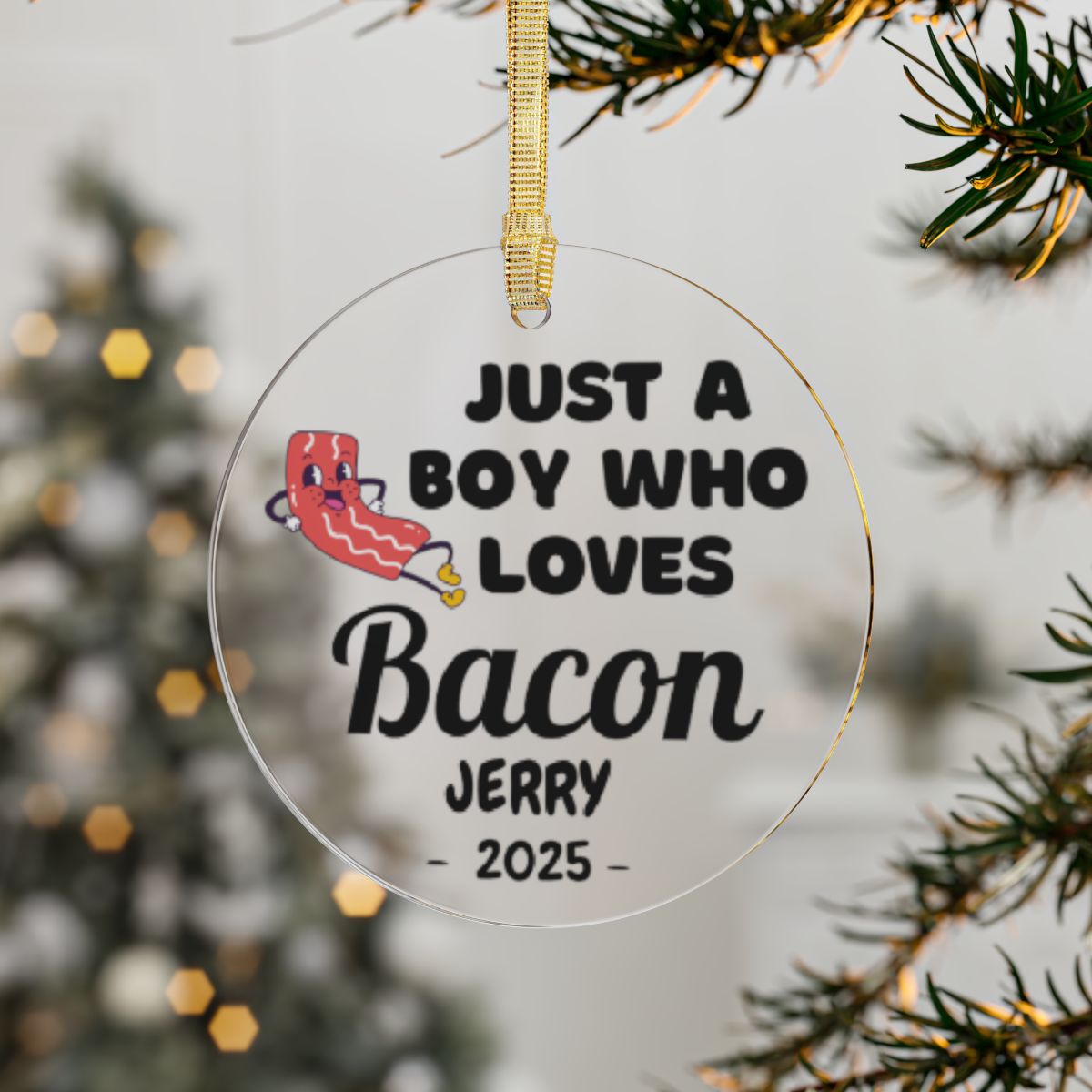 Just a Boy Who Loves Bacon Ornament – Personalized Acrylic Keepsake