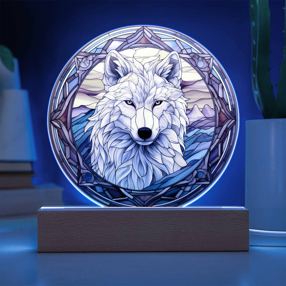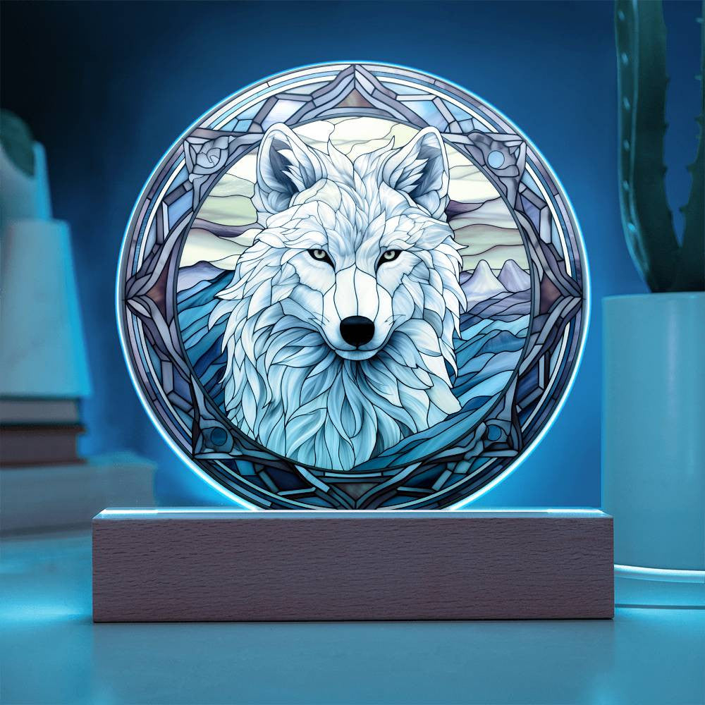 Introducing our stunning Stained Glass Style White Wolf Plaque and White Wolf Ornament, the perfect centerpiece for any winter-themed decor. This captivating winter wolf LED light plaque features a beautiful 3D image look of a majestic white wolf, making it an ideal gift for him, whether it's for your dad, grandpa, or any wolf lover in your life. Enhance your home with this LED night light that not only brightens up your space but also serves as a striking piece of animal wall art. Ideal for rustic lodges, farmhouse decor, or even as a thoughtful hunting gift during the snowy Christmas season, this enchanting piece connects with nature and embodies the spirit animal of the wolf. Don’t miss the chance to elevate your Christmas decor or surprise a special man with this unforgettable wolf gift idea.