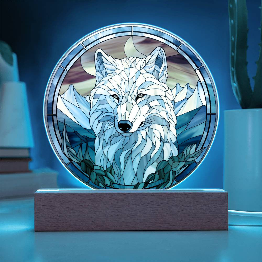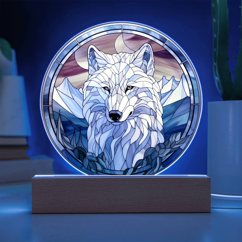 Introducing our stunning Stained Glass Style White Wolf Plaque and White Wolf Ornament, the perfect centerpiece for any winter-themed decor. This captivating winter wolf LED light plaque features a beautiful 3D image look of a majestic white wolf, making it an ideal gift for him, whether it's for your dad, grandpa, or any wolf lover in your life. Enhance your home with this LED night light that not only brightens up your space but also serves as a striking piece of animal wall art. Ideal for rustic lodges, farmhouse decor, or even as a thoughtful hunting gift during the snowy Christmas season, this enchanting piece connects with nature and embodies the spirit animal of the wolf. Don’t miss the chance to elevate your Christmas decor or surprise a special man with this unforgettable wolf gift idea.