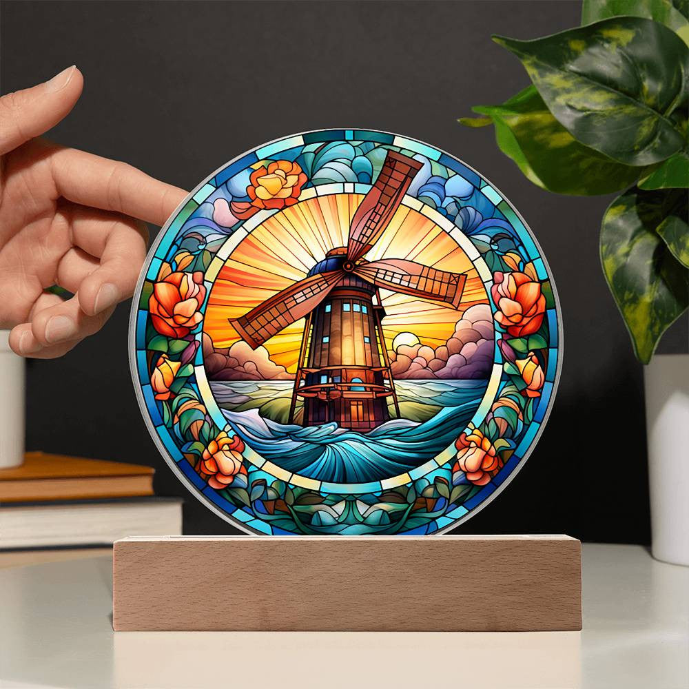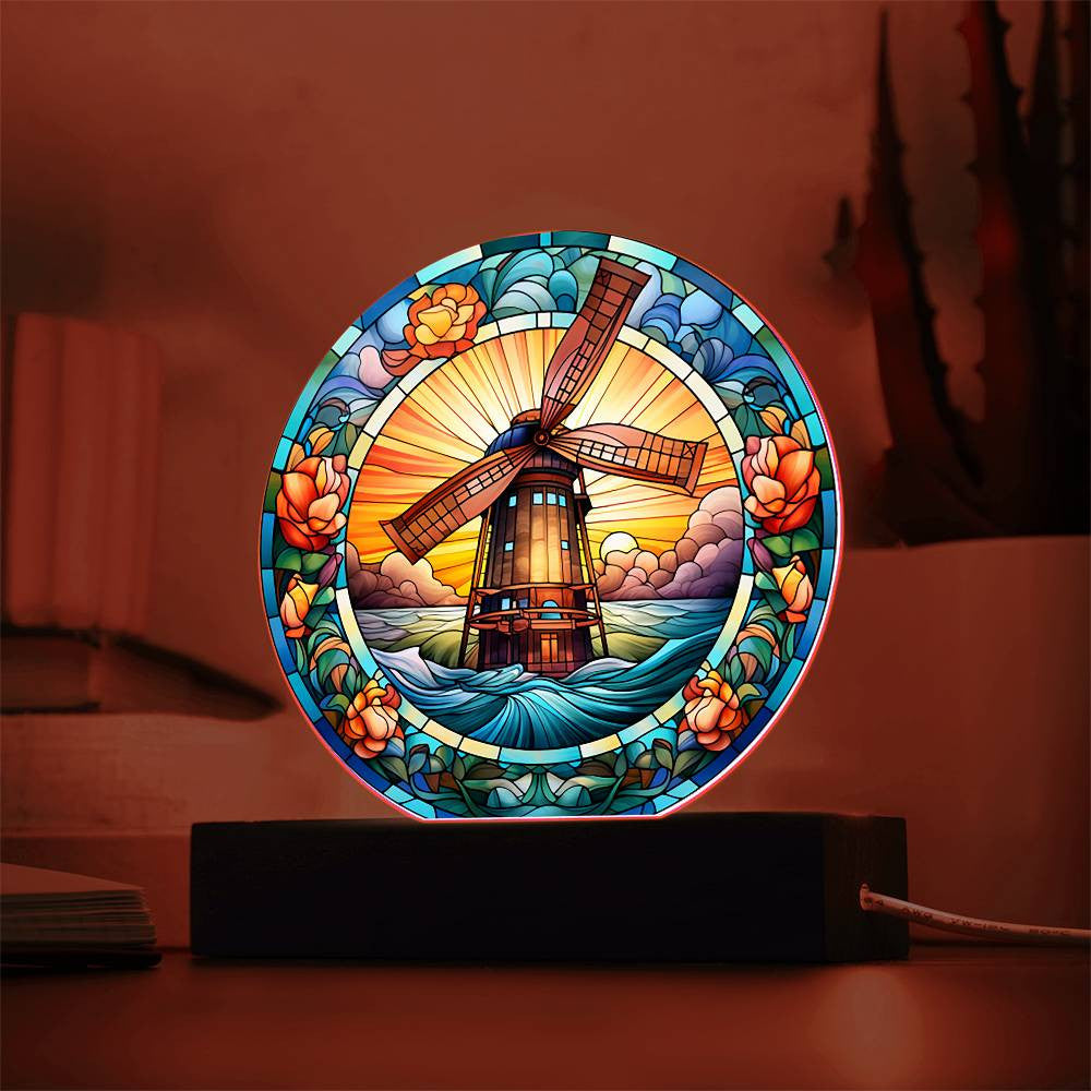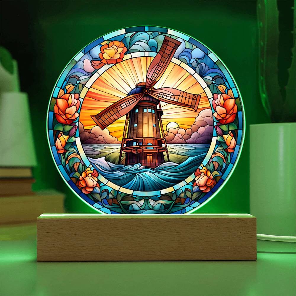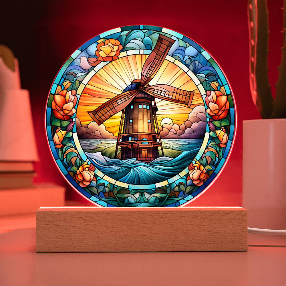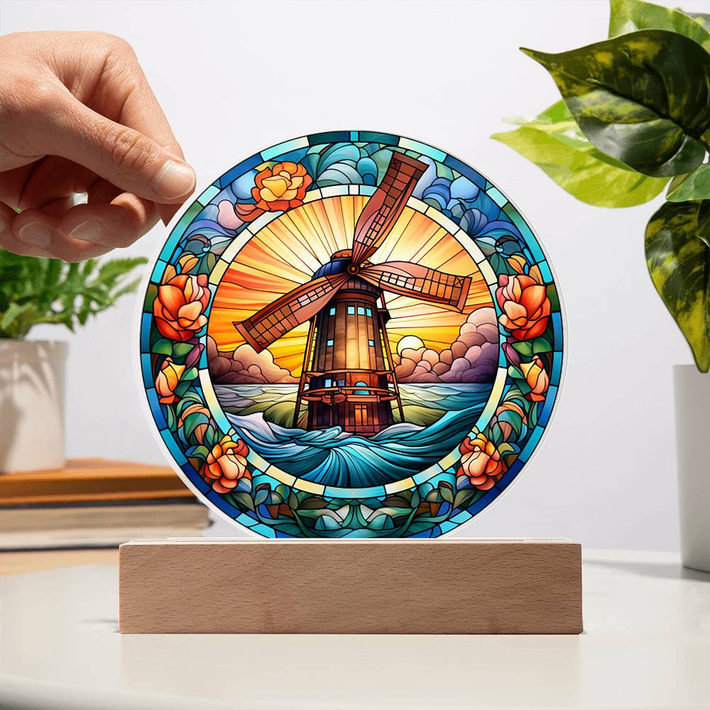 Stained Glass Windmill Acrylic Circle Plaque