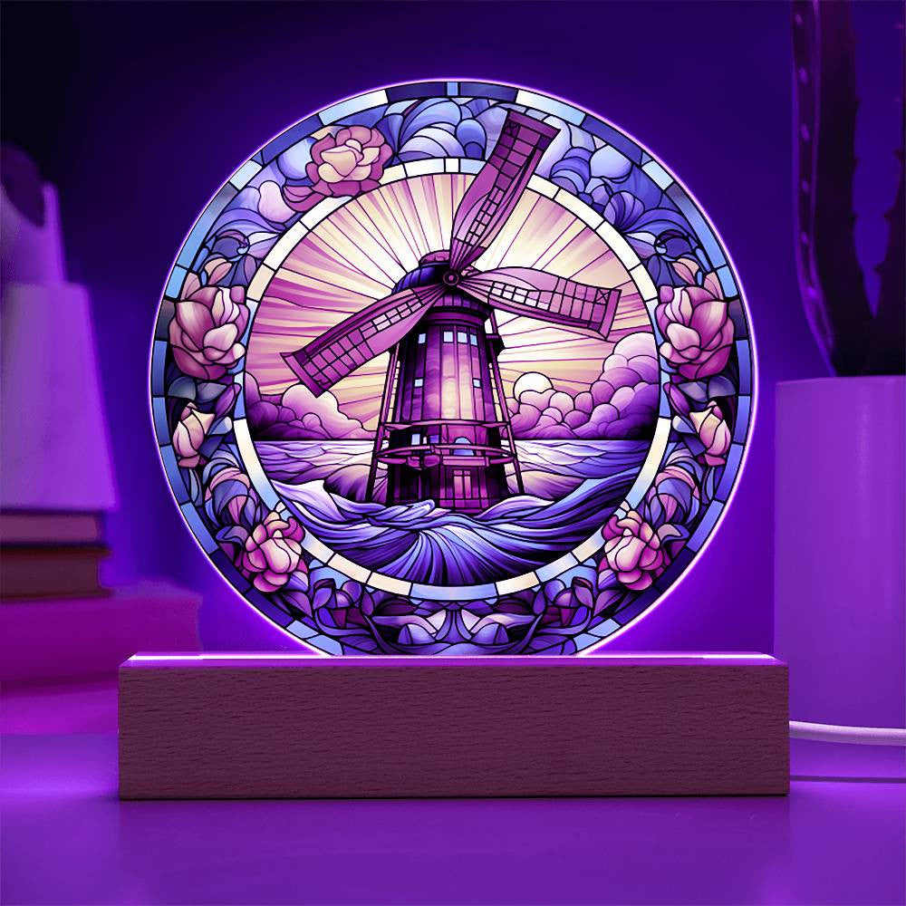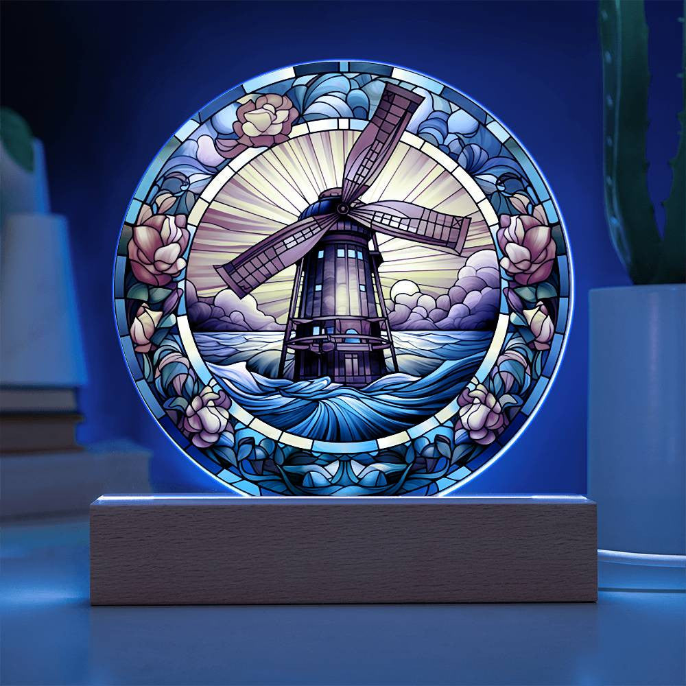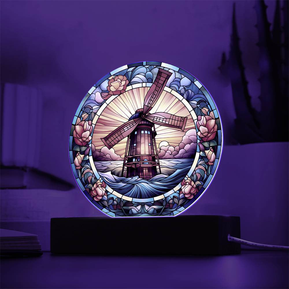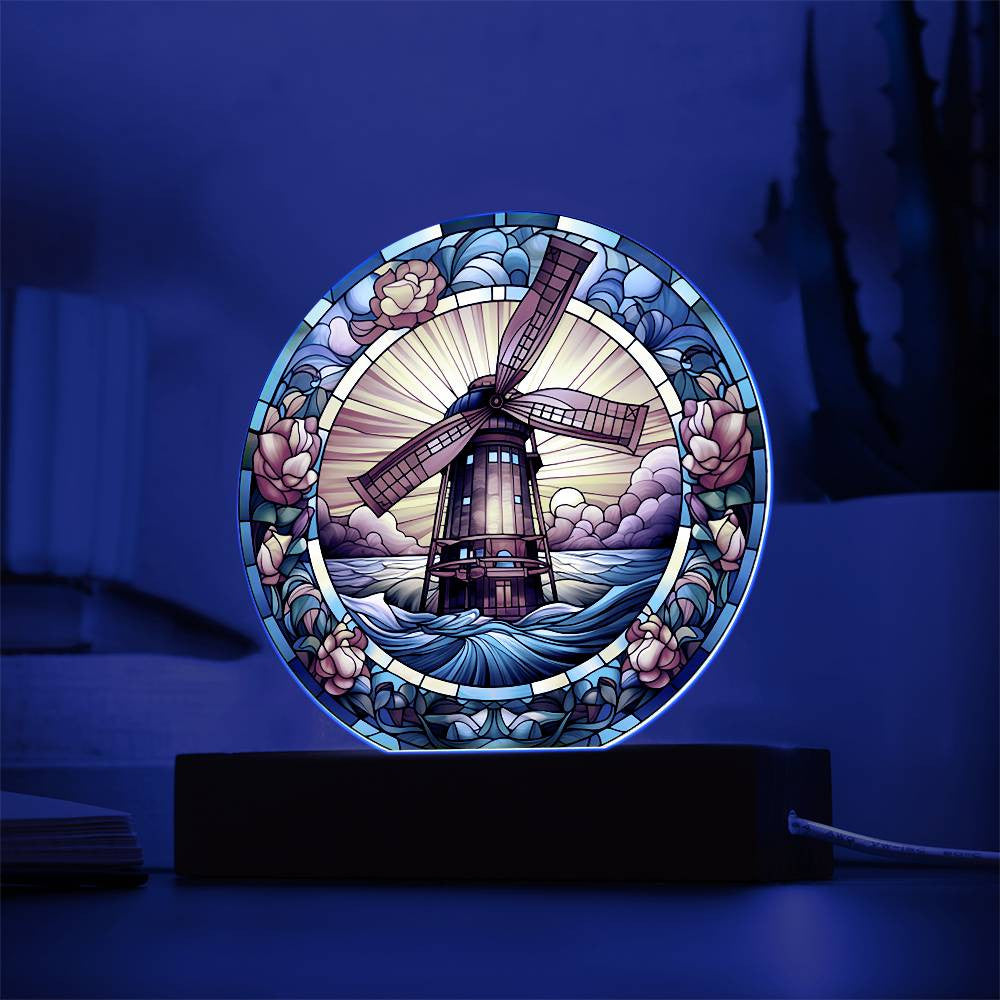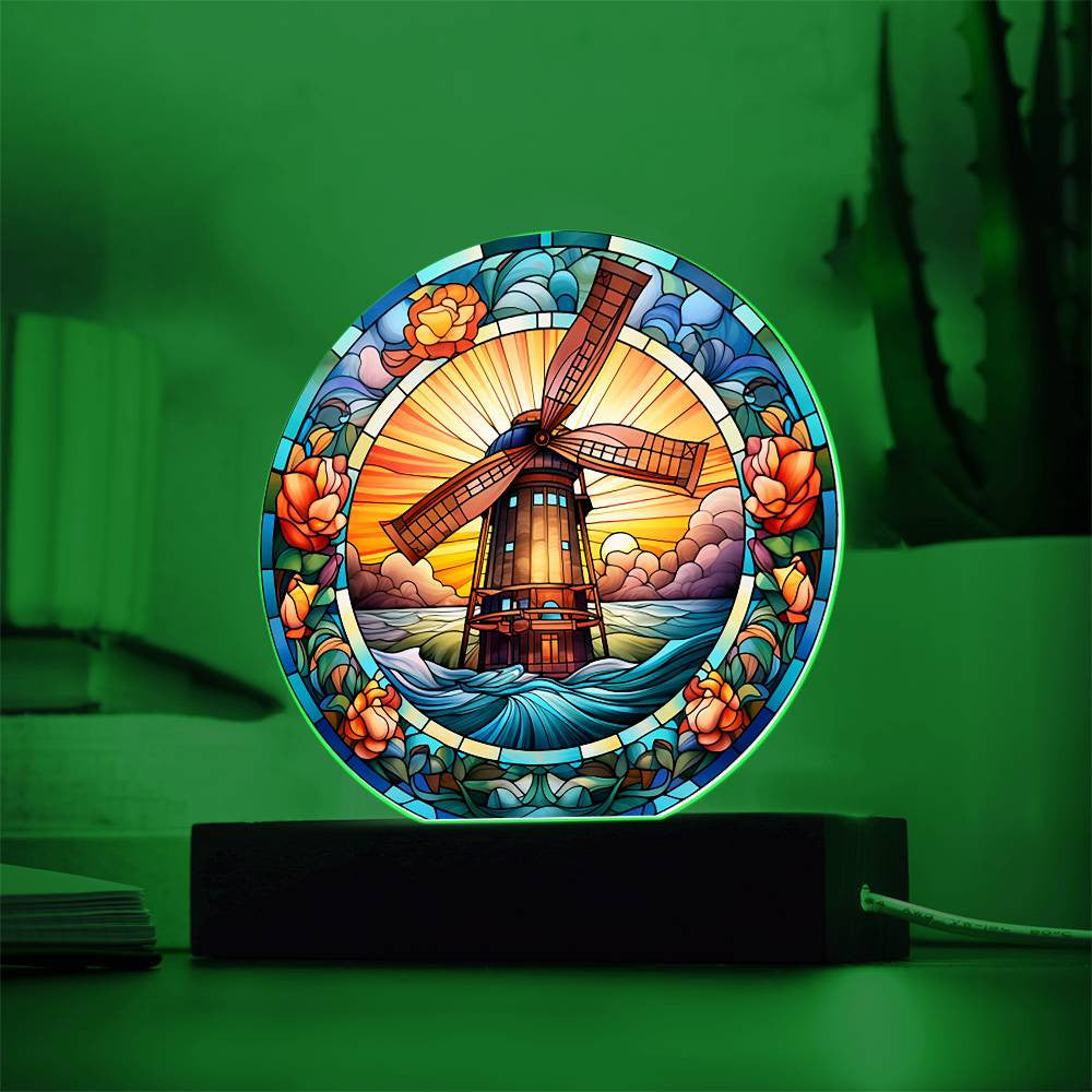 Stained Glass Windmill Acrylic Circle Plaque