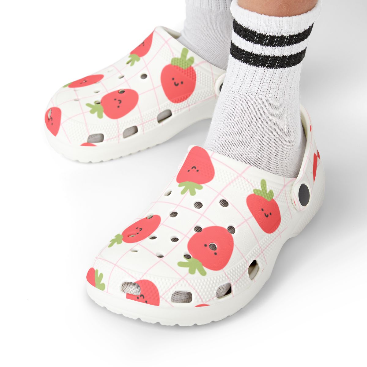 Strawberry Print Clogs – Lightweight EVA Slip-Ons in Adult & Kids Sizes