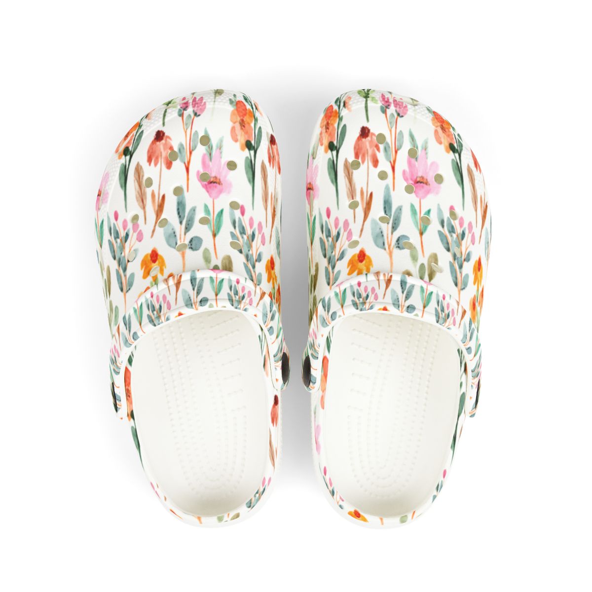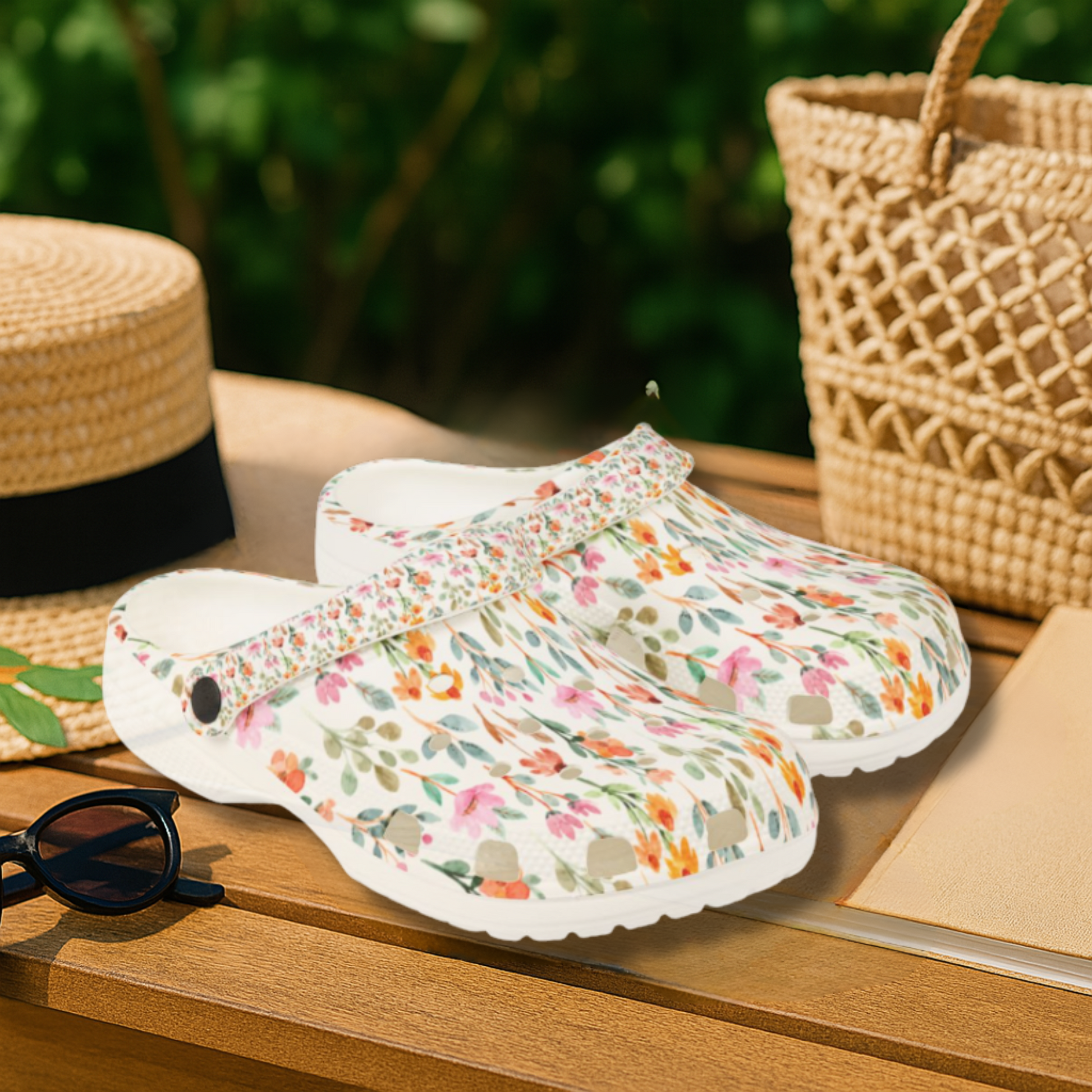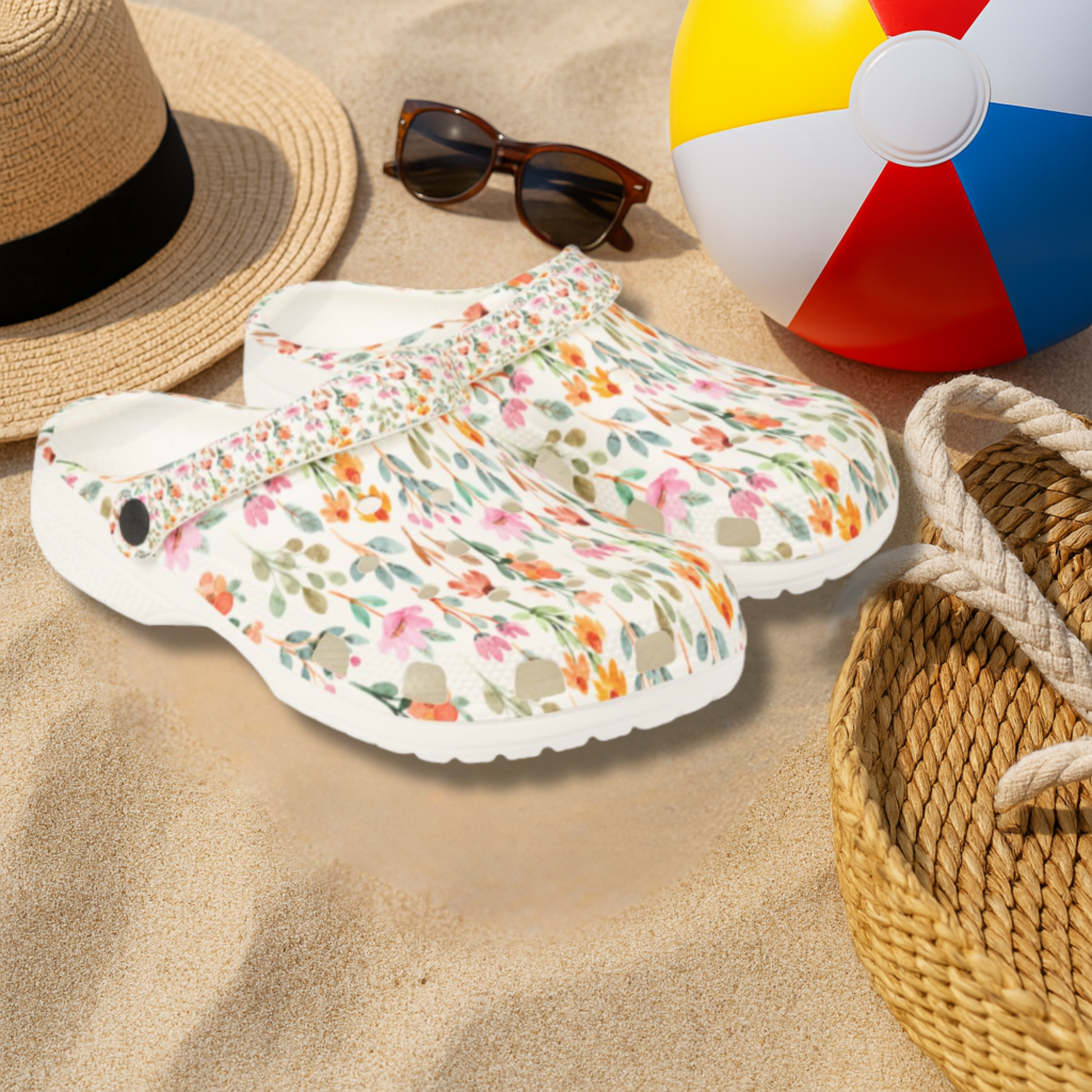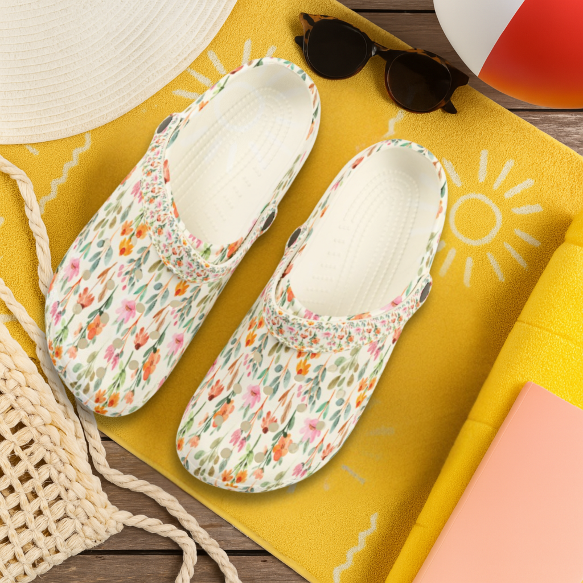 Sunset Bloom Garden Shoes for Adults & Kids – Lightweight EVA Slip-On Floral Summer Sandals Water-Resistant Nurse Comfort Walking Footwear