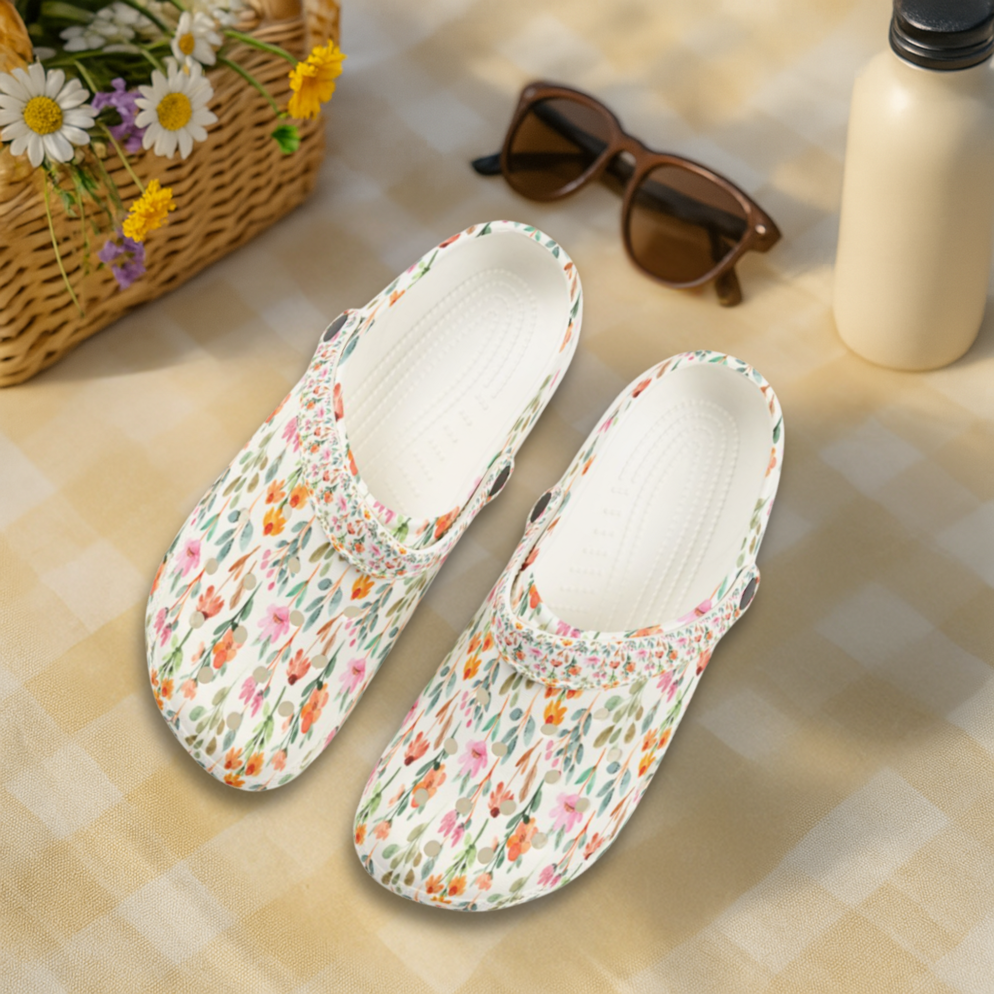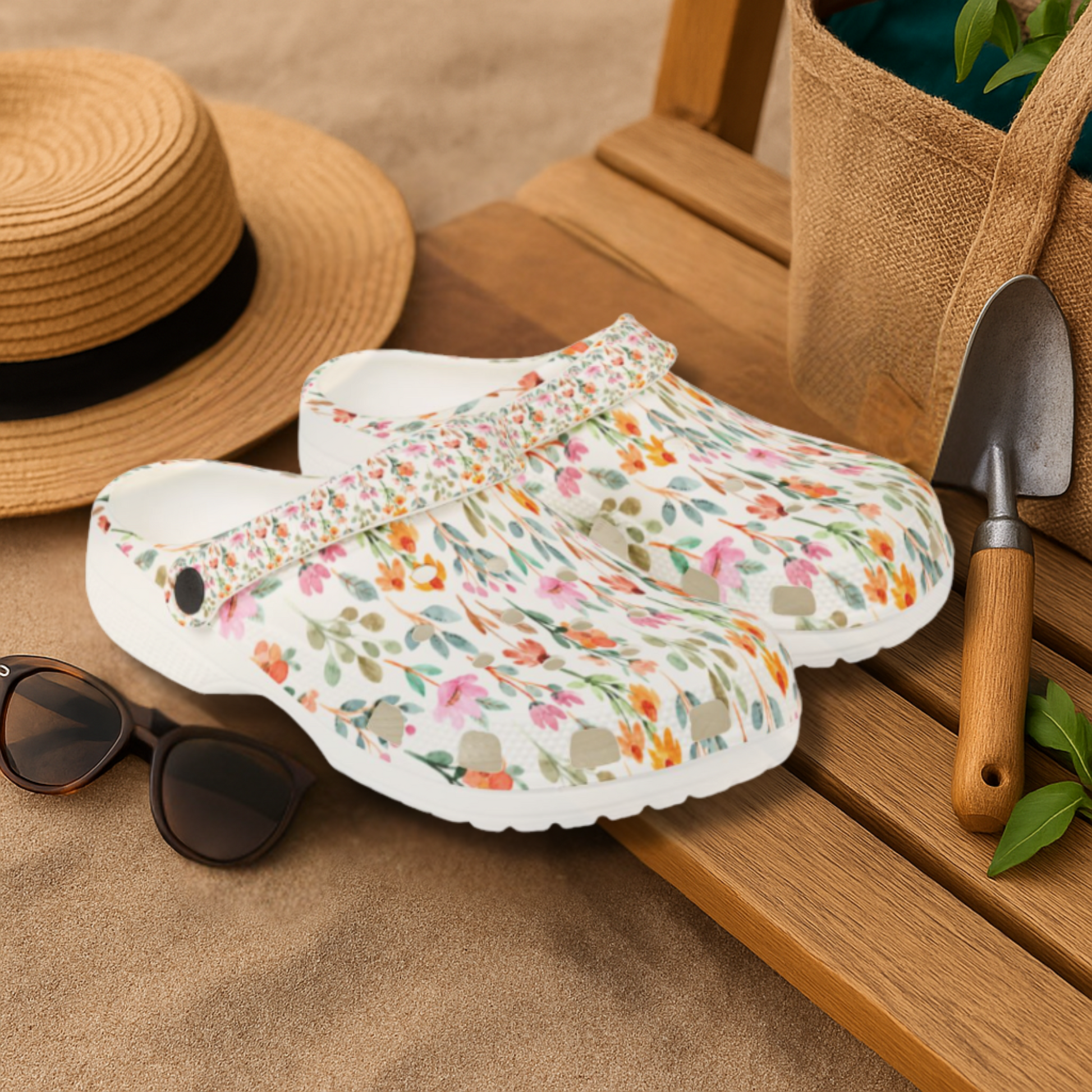 Carry a sunset garden everywhere you roam! These slip-on sandals burst with coral, blush, and tangerine wildflowers—mirroring the vibrant-floral footwear trend topping Etsy searches. Feather-light, water-friendly EVA cradles your feet from gardening to boardwalks to 12-hour shifts, while a pivot heel strap flips between casual slide and secure stroll in seconds. Grab a matching pair for your mini-me and bloom together all season!