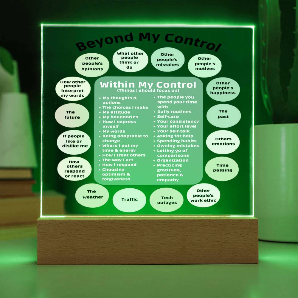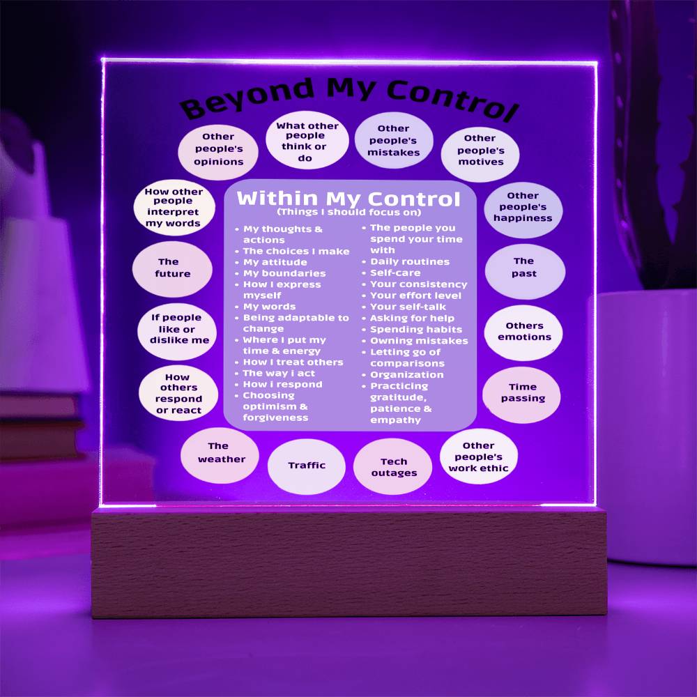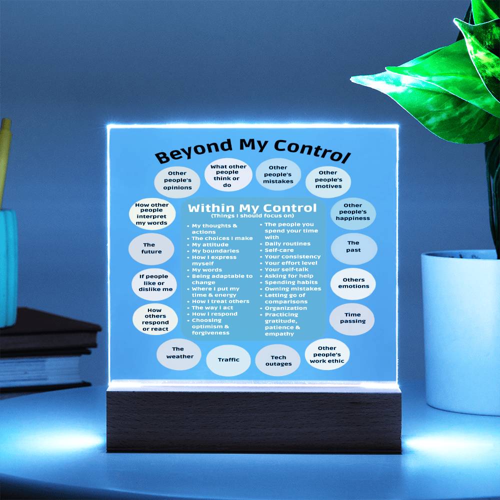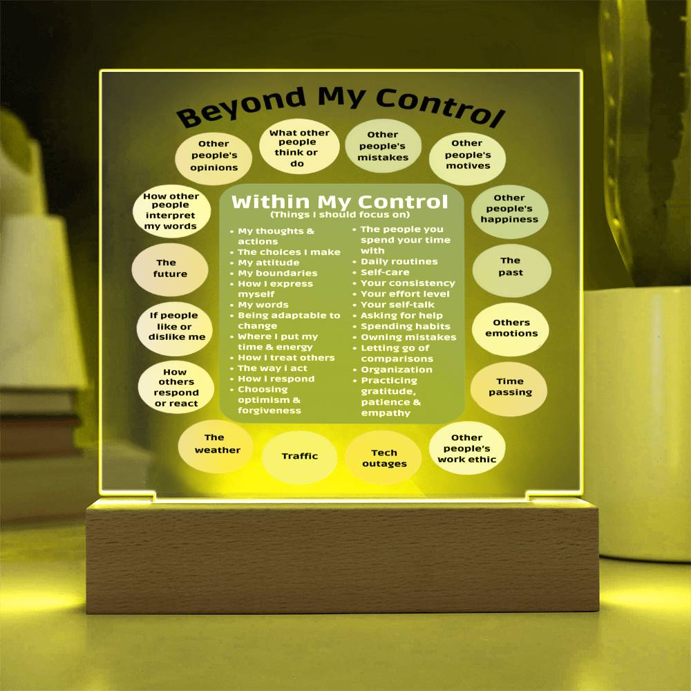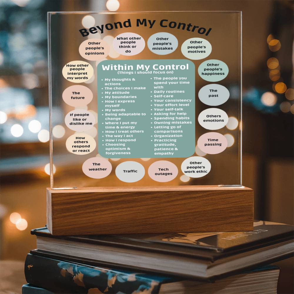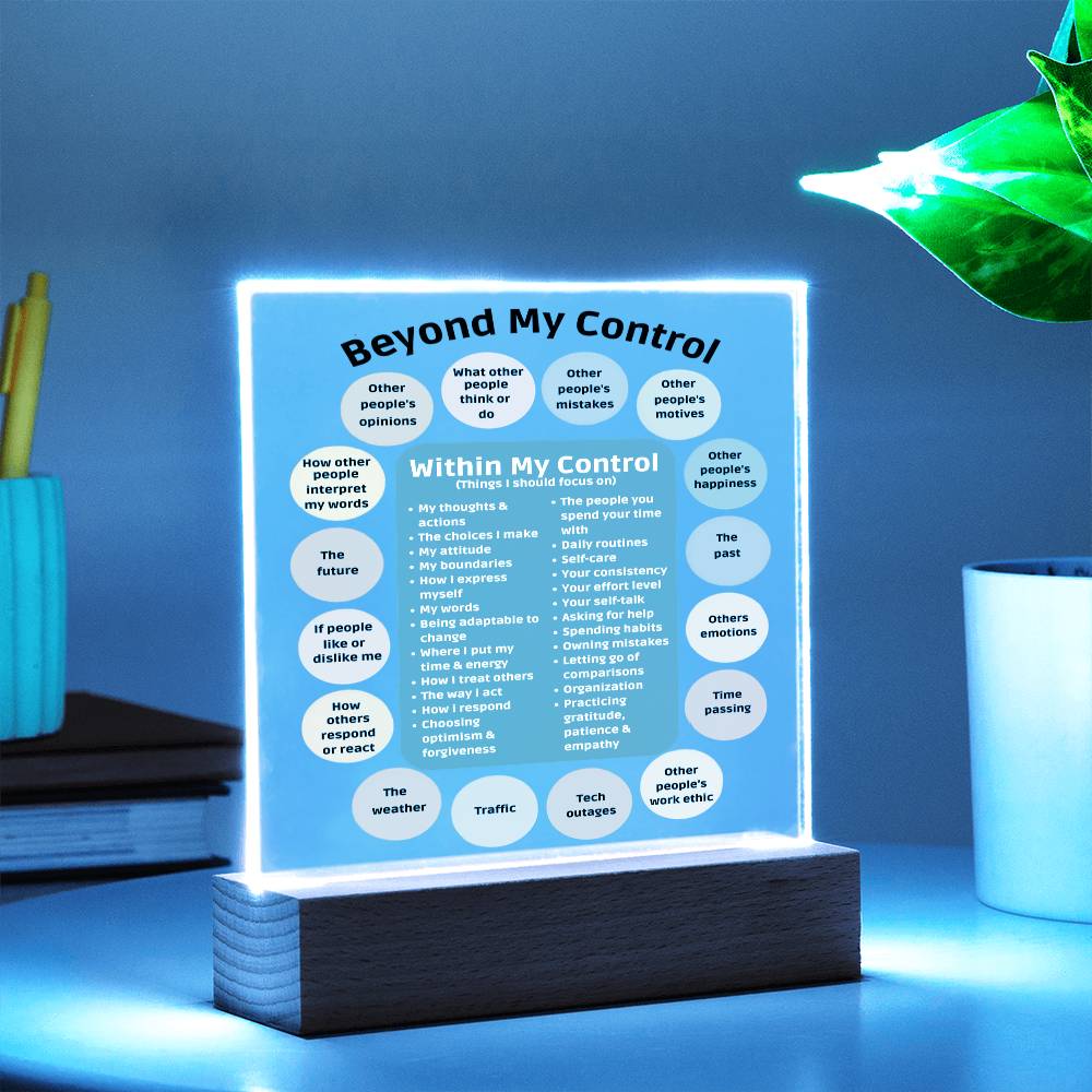 Things I Can Control Acrylic LED Plaque – Mindful Desk Decor for Anxiety Relief, Therapists, Classrooms & Counselor Offices