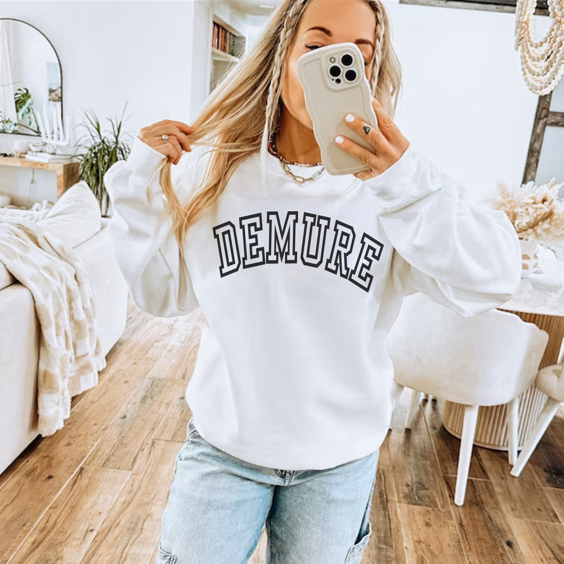 Very Demure Very Mindful Very Cutesy Crewneck Sweatshirt! Wear this very cutesy sweatshirt and look very demure! Not like those other girls. Not too much!