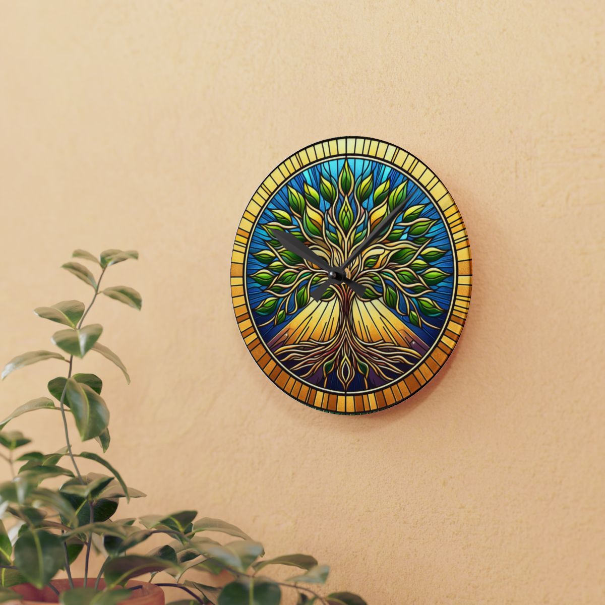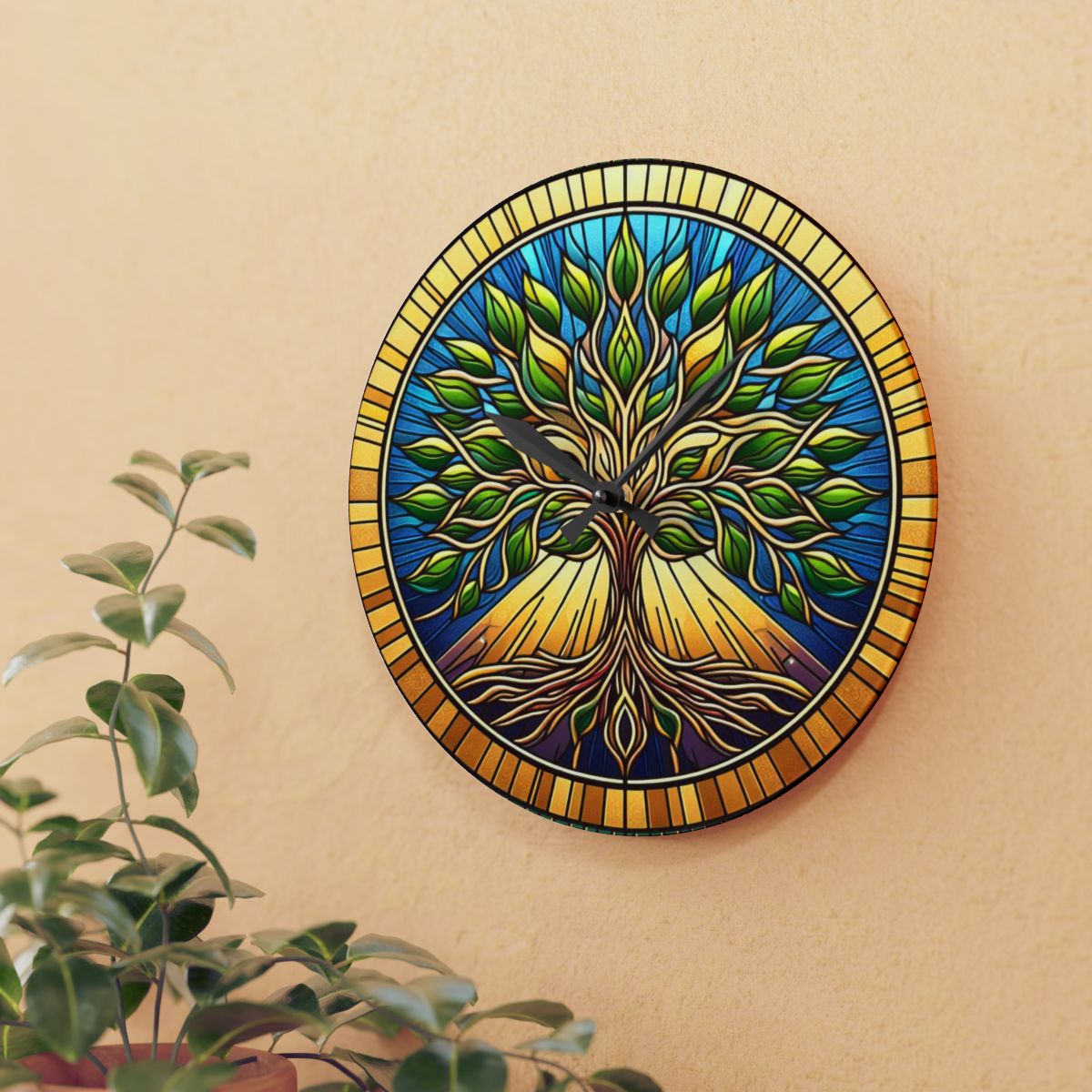 Introducing our stunning Tree of Life Custom Clock, a unique piece of wall art that effortlessly combines functionality with beauty. This large wall clock features a beautiful stained glass design inspired by the Celtic Tree of Life, making it a perfect gift for her on special occasions like Mother's Day, birthdays, or anniversaries. Whether you're looking for a thoughtful present for mom, grandma, or nana, this personalized clock serves as an elegant addition to any kitchen or home decor. Its vibrant orange hues not only add a pop of color to your space but also make it a standout piece among unique wall clocks. Celebrate life’s moments and create lasting memories with the Tree of Life Custom Clock – a memorable gift that will be cherished for years to come.