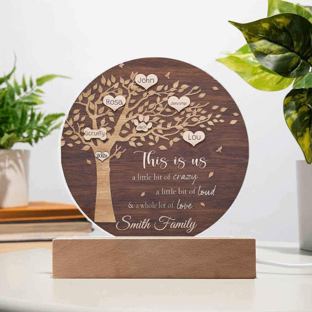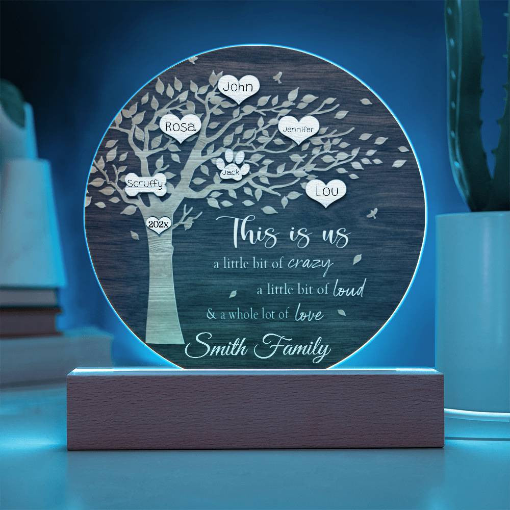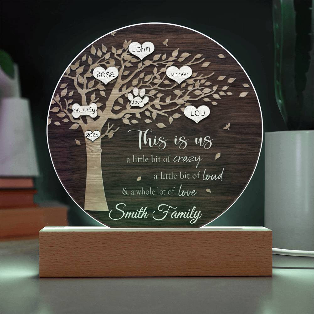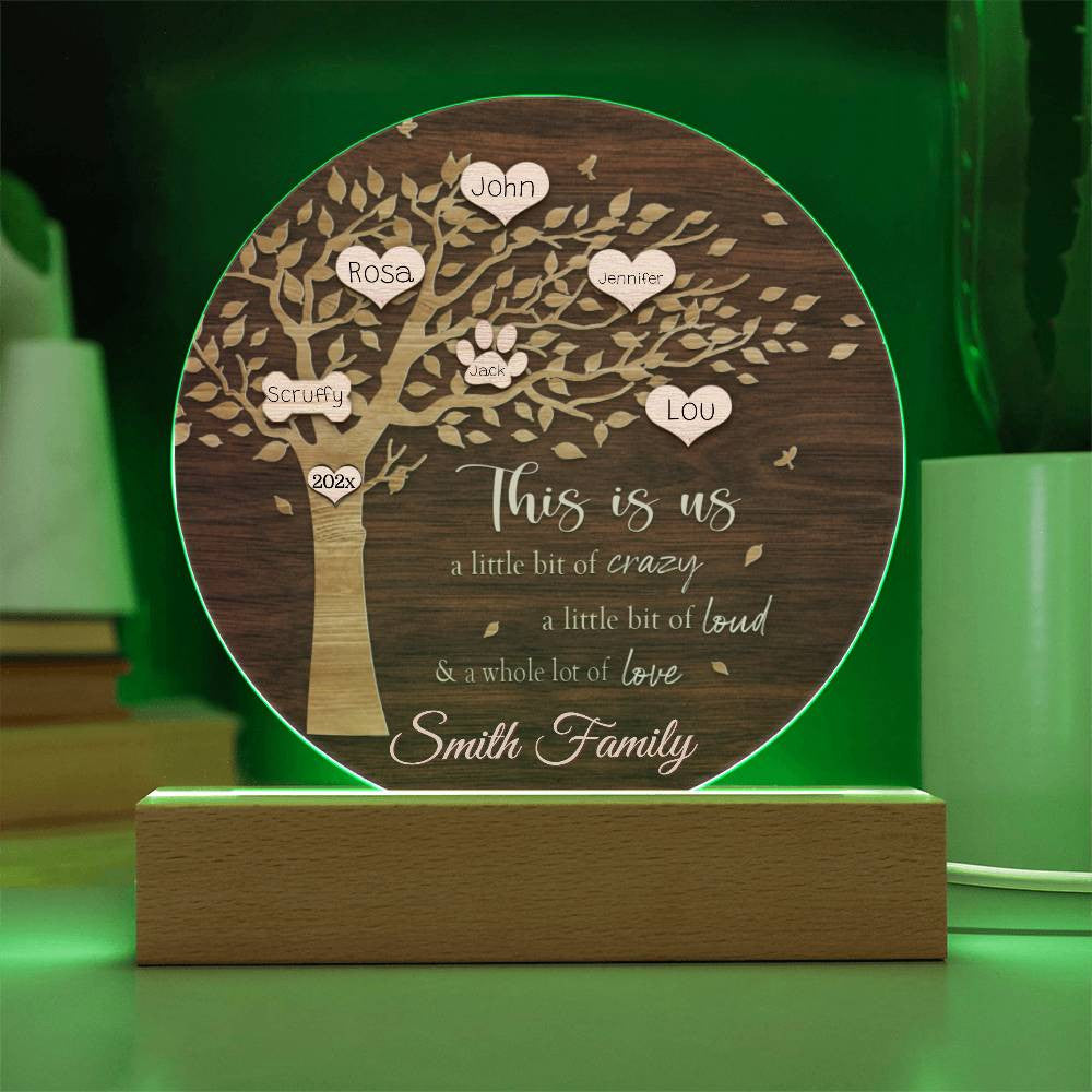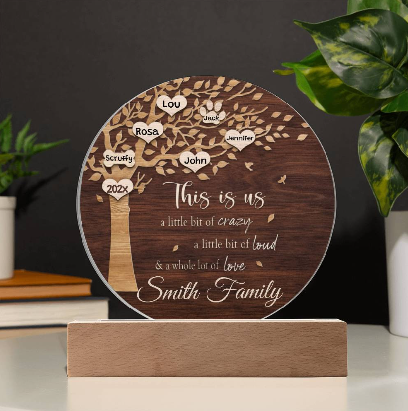 Your plaque will be crafted from premium acrylic with a professionally printed design for a polished look. It comes with a stylish wooden LED base, and you can choose between a USB plug-in option OR a cordless battery-operated option (requires 2 AAA batteries, not included). Both LED bases feature 7 vibrant colors, allowing the user to customize the lighting with various color changes and dynamic cycles.