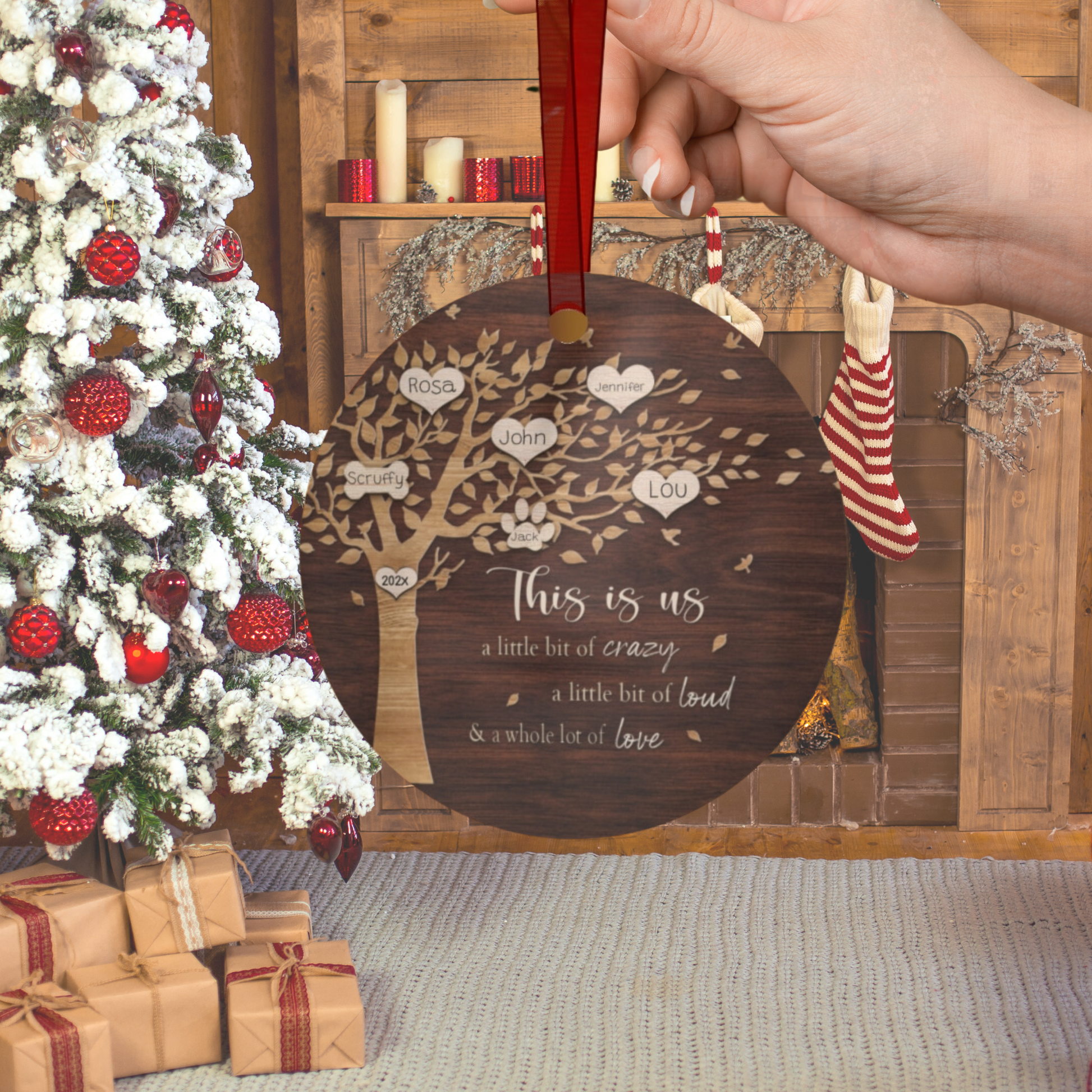 - Each ornament comes with a separate red ribbon for hanging
