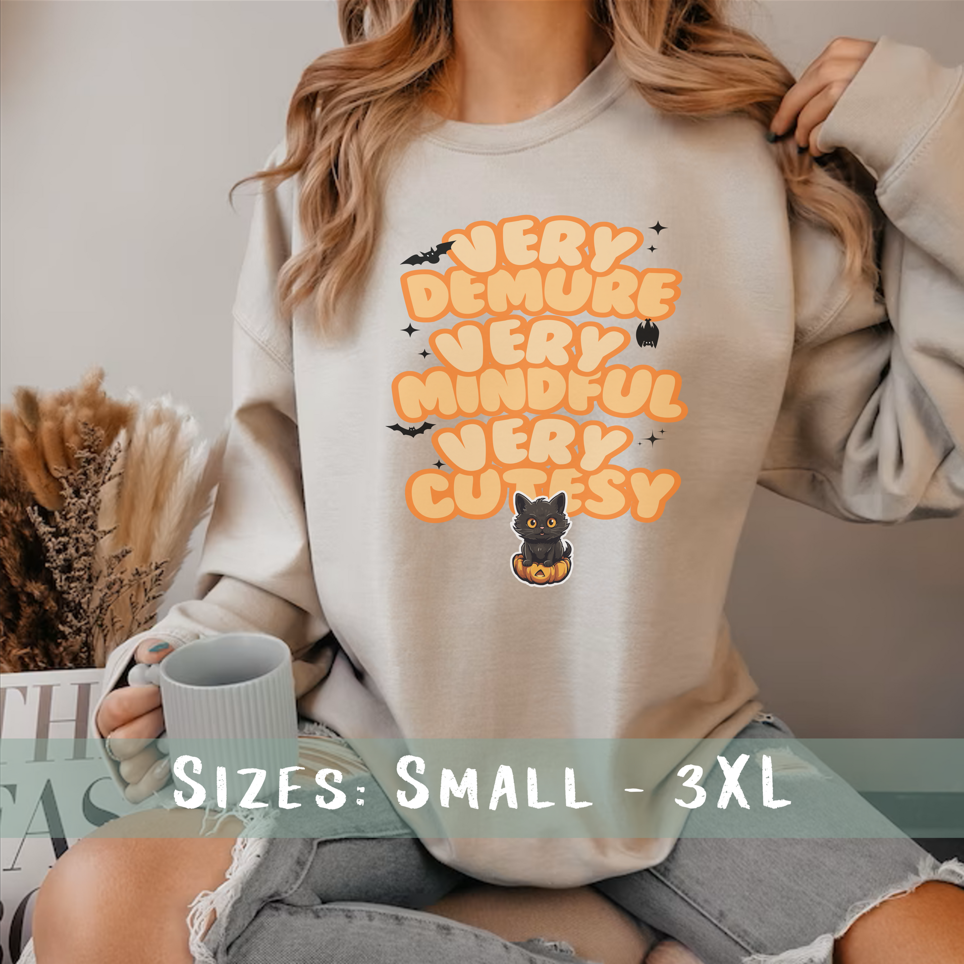 Very Demure Very Mindful Very Cutesy Cat Pumpkin Sweatshirt