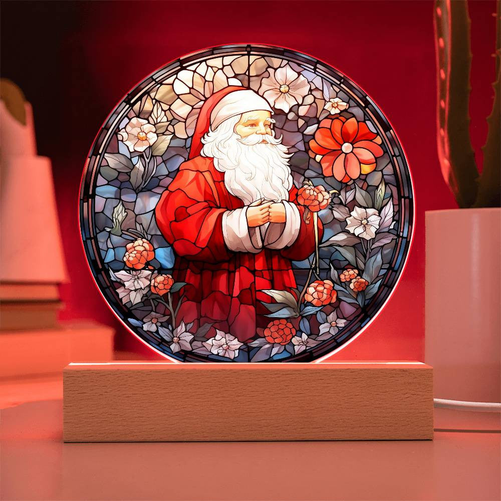 new homeowner gifts, gift for client, gift for neighbor, new homeowner gift, congrats new home, stained glass santa, custom stained glass, modern stained glass, faux stained glass, santa ornament, acrylic plaque, acrylic night light, vintage suncatcher, christmas ornament, santa claus painting, cute santa claus, santa glass lamp, gift for client