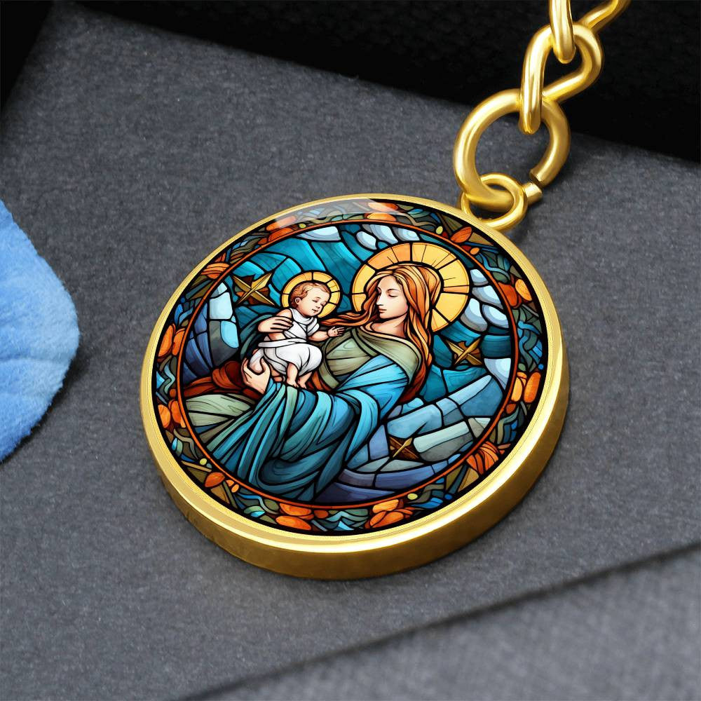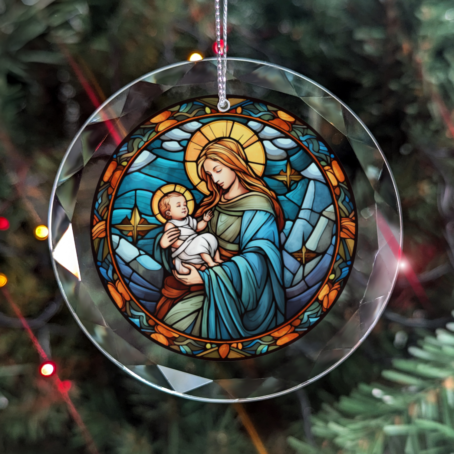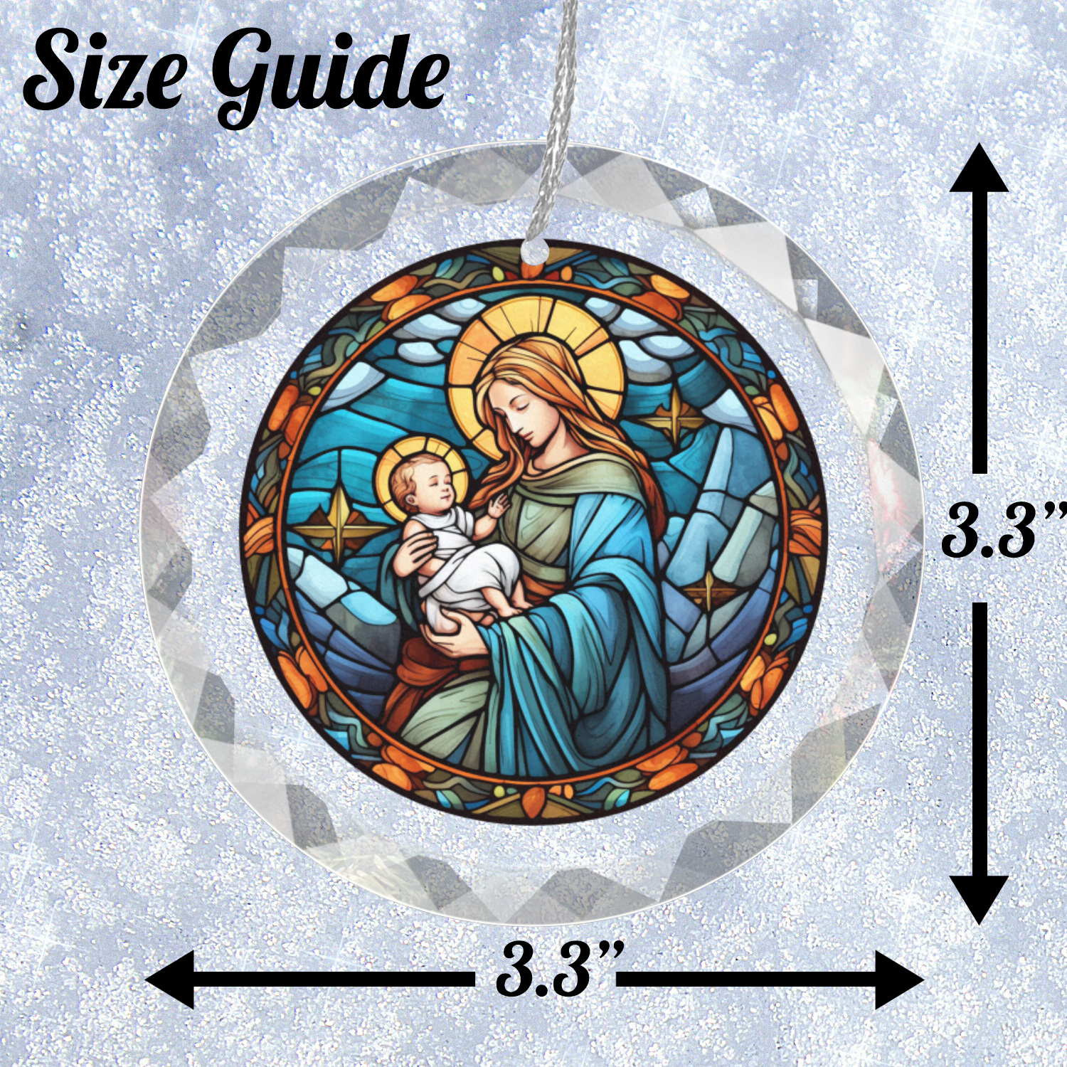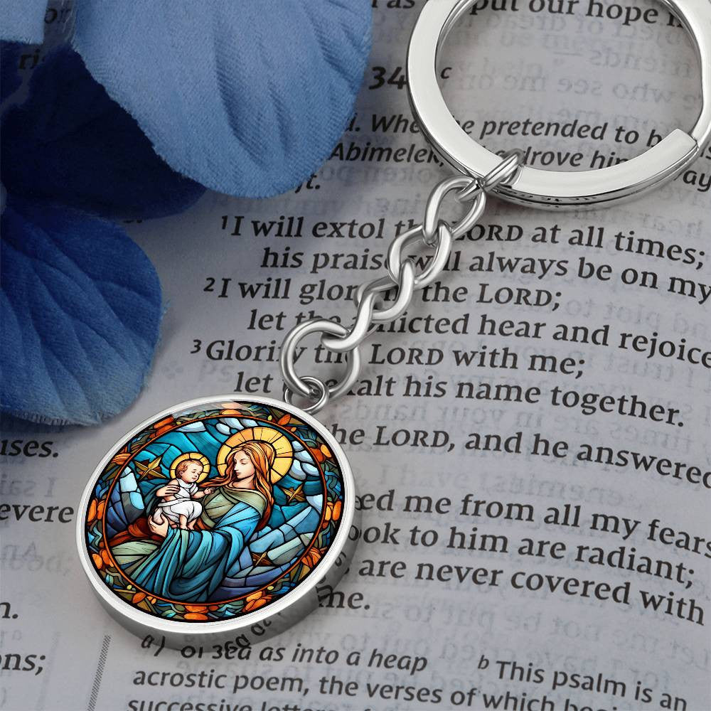 Introducing our beautiful Stained Glass Mary and Baby Jesus Keychain and Ornament, a perfect blend of elegance and spirituality. This faux stained glass ornament features the iconic Virgin Mary and Baby Jesus, capturing the essence of the nativity scene in a portable design. Ideal as a Christmas decor piece or a thoughtful religious gift, this keychain embodies the loving connection of Mary and Joseph. It's not just a simple accessory, but a piece of stained glass art that can accompany you wherever you go, making it a daily reminder of faith. Whether you're looking for a Christian ornament for your own collection or a unique Catholic keychain for someone special, this Mary and Baby Jesus ornament is sure to delight and inspire. Brighten your keys and your spirit with this charming Christian Christmas treasure!
